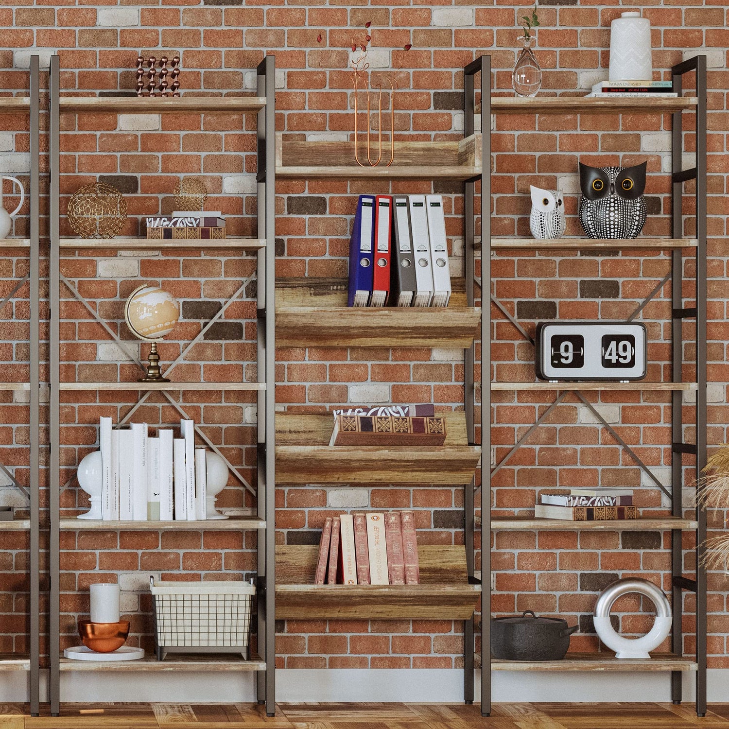 - Triple Wide Bookshelves: With fourteen open shelves, this triple-wide display shelf maximizes vertical storage space while organizing your daily essentials.