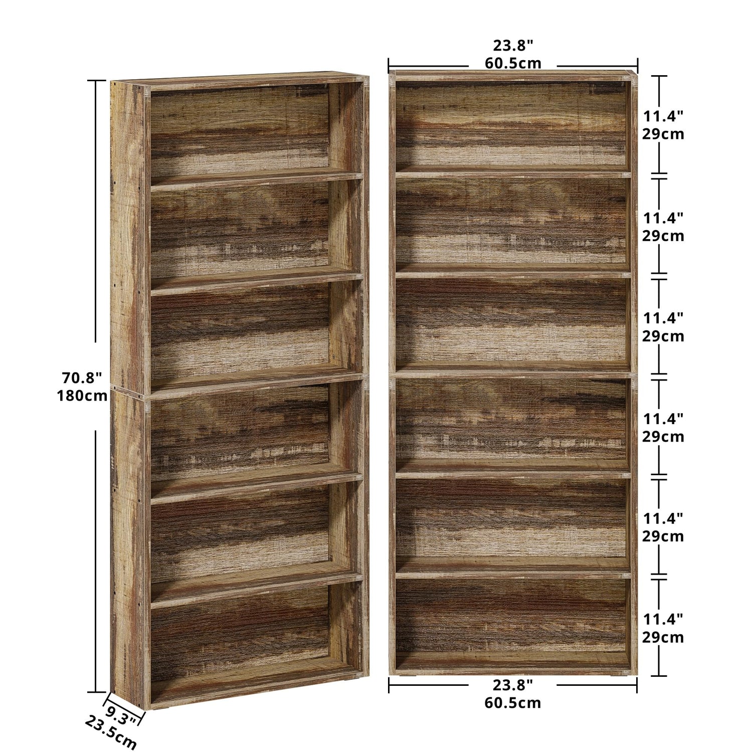 - Chic Rustic Design: A 6-tier bookcase standing at 23.82" W * 9.25" D * 70.87" H, with the clean lines, is ideal for almost any space in your home