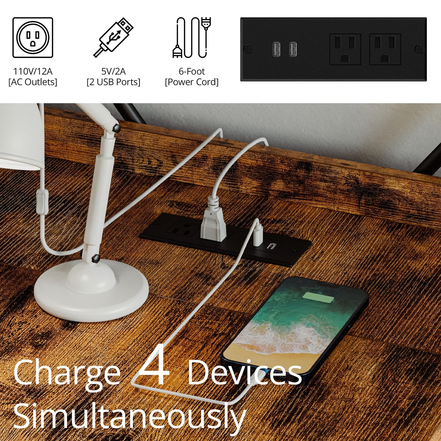 - Desk Table with Built-in Power Outlet: Featured a built-in power socket with 2 outlets & 2 USB ports, it is convenient to charge your laptop, tablet, or smartphone