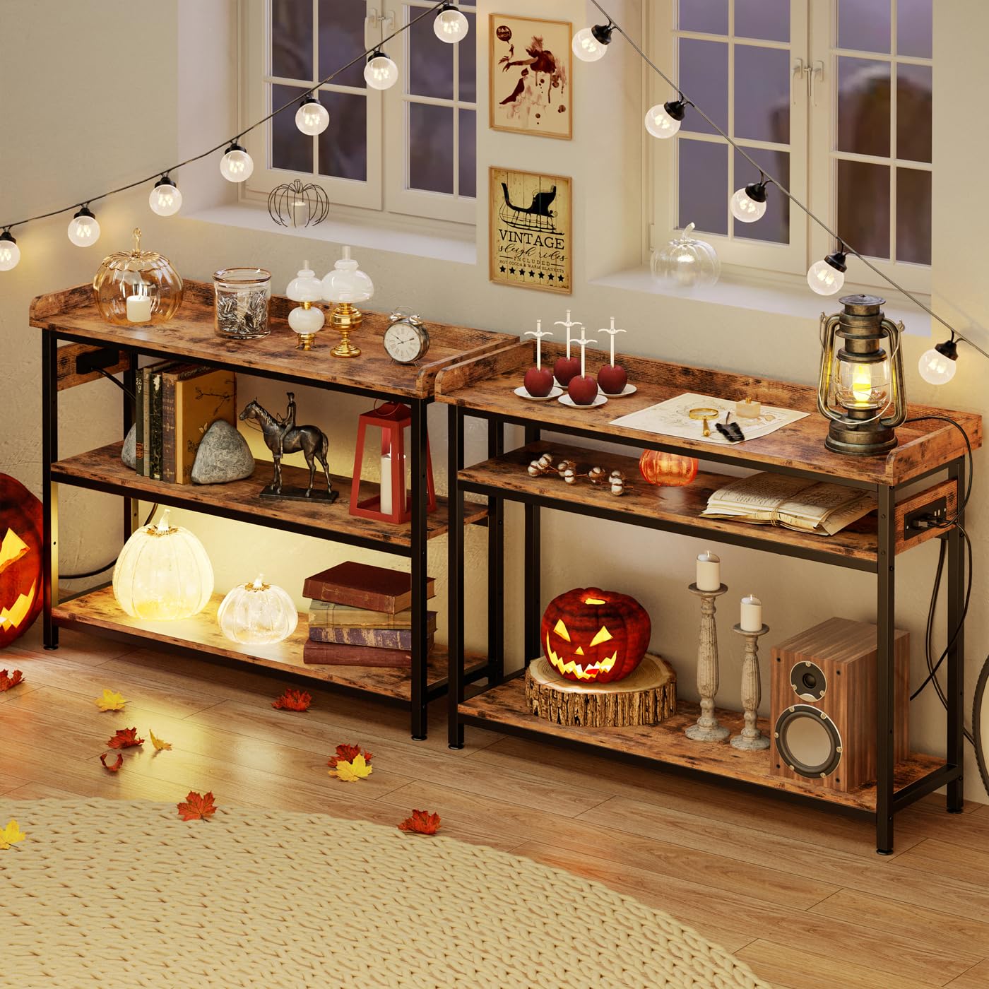 IRONCK Console Table, Sofa Table with Power Outlet, Farmhouse Hallway Table for Entryway, Living Room, Height Adjustable, Easy Assembly, Rustic Brown, 43"