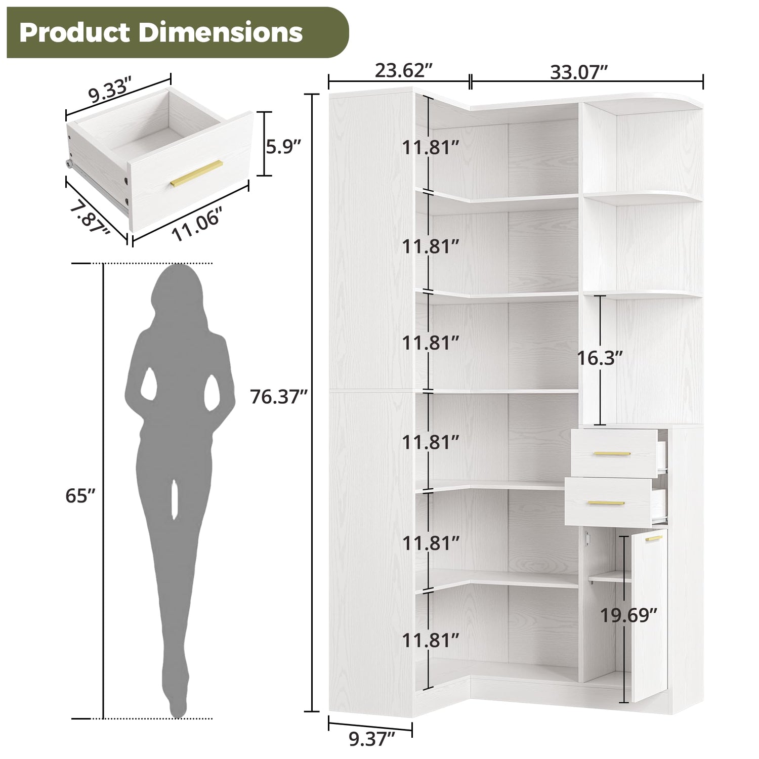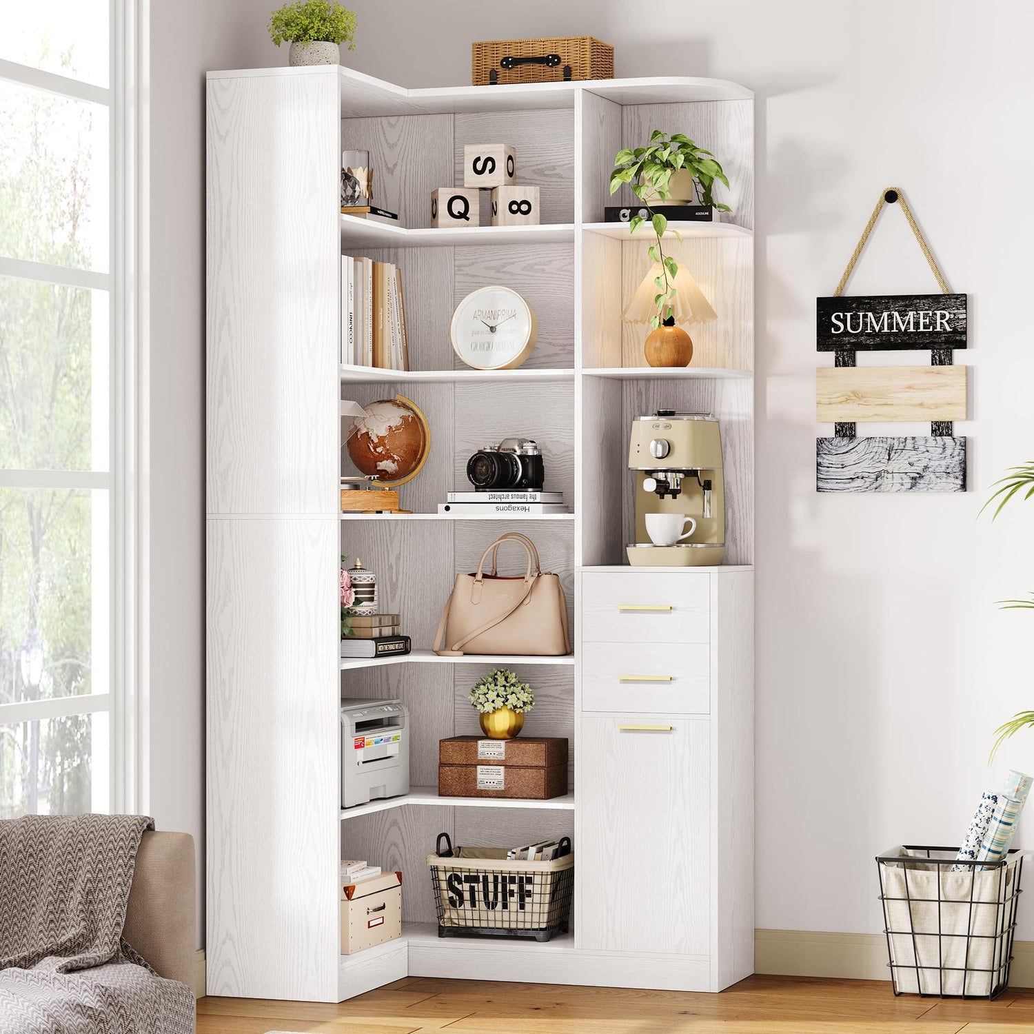 - Massive Storage Capacity: This 6-tier corner bookshelf features 10 shelves and 2 drawers, offering ample space to store books, plants, and home decor. The deep shelf design easily accommodates large and bulky items for a tidy, organized space