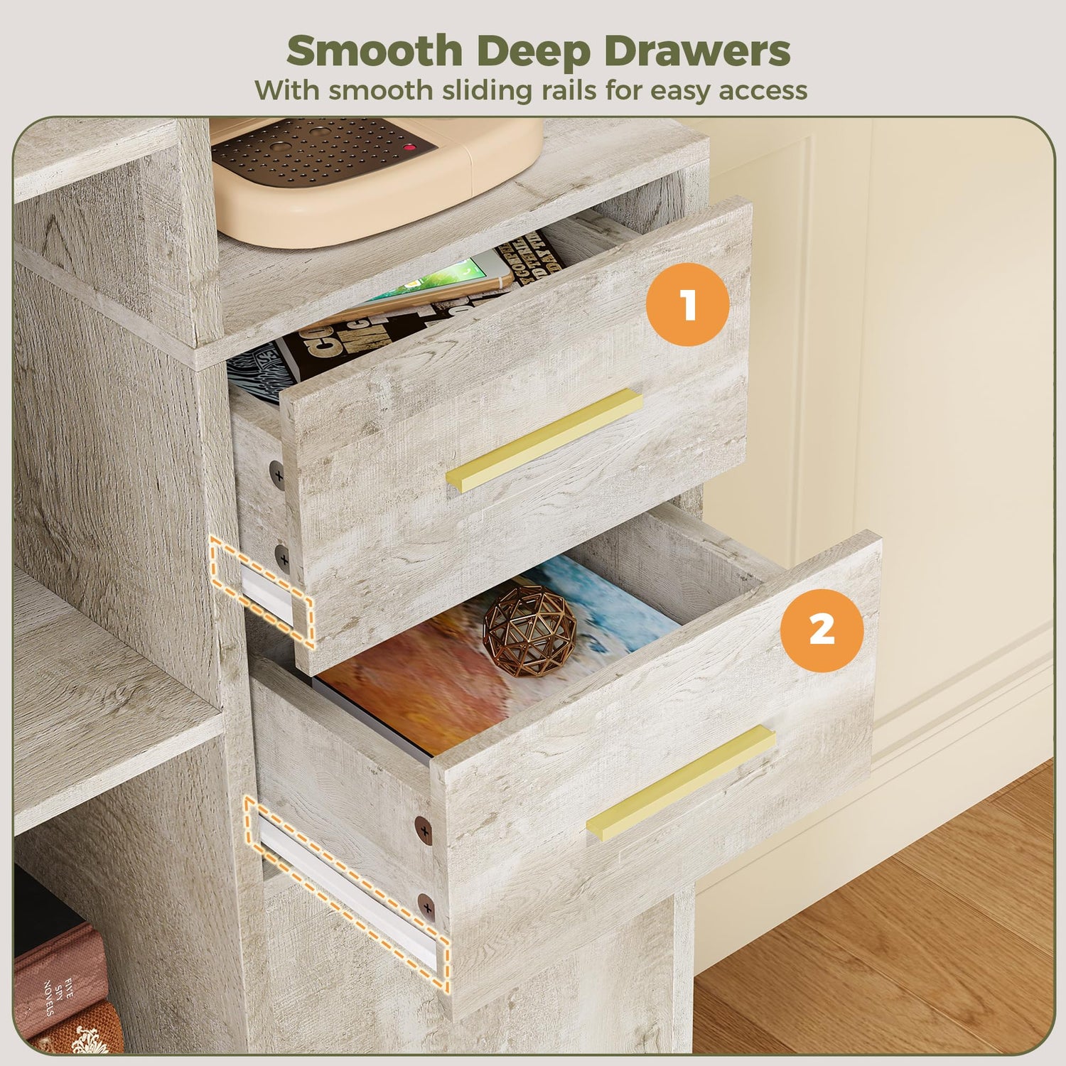 IRONCK Corner Bookshelf, 76" Tall Corner Bookshelves, 6 Tiers L-Shaped Bookcase with 10 Open Shelves and 2 Storage Drawers for Living Room or Home Office