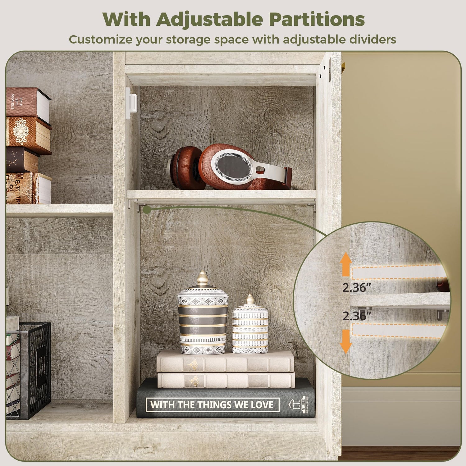 - Adjustable Shelf: The bookcase features adjustable cabinet shelves that adapt to your needs, allowing you to effortlessly create a layout that suits your style and fits items of various sizes