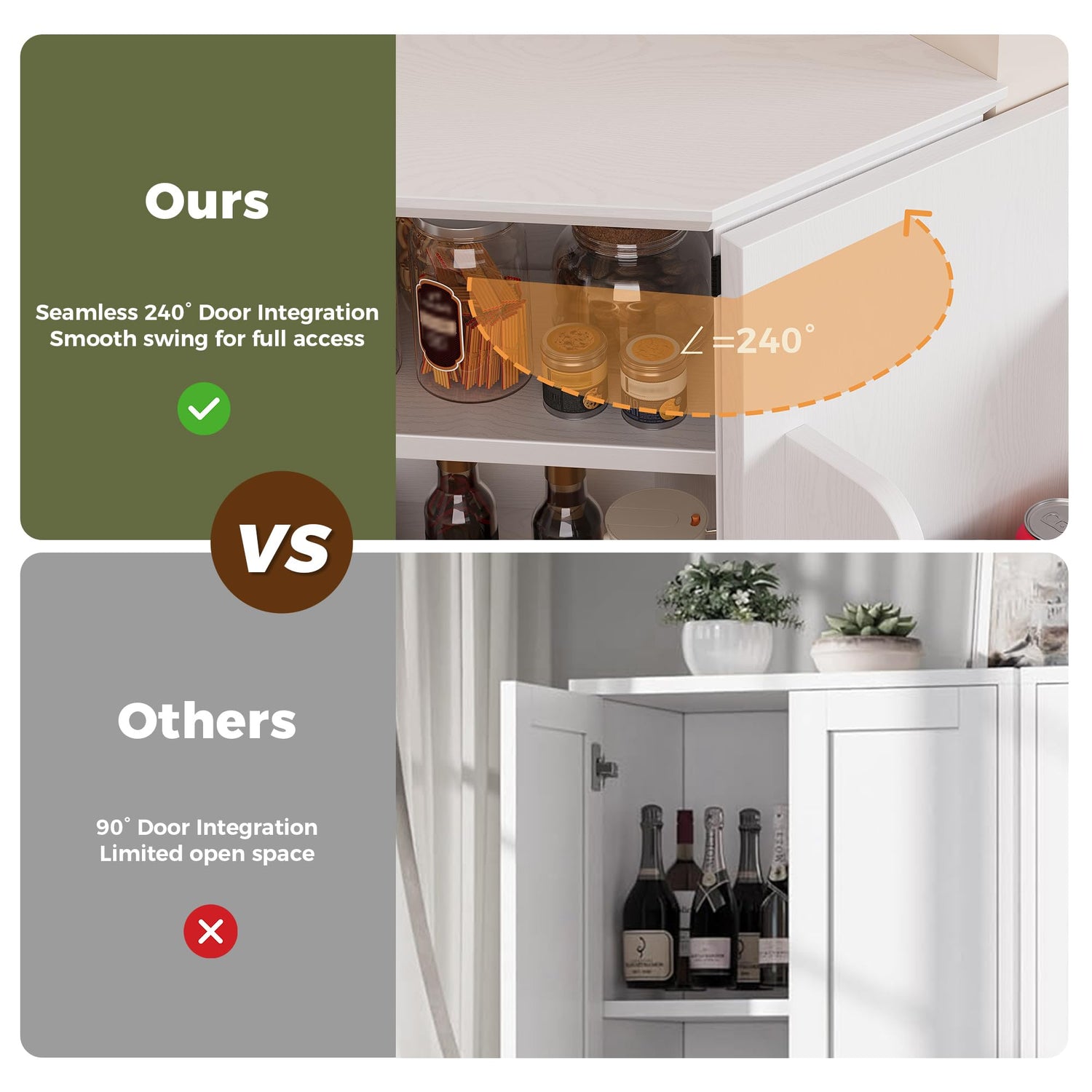- 240° Wide-Opening Doors: This corner pantry features 4 doors that open a full 240°, unlike standard 90° cabinets, giving you complete, hassle-free access to all items. No more tight corners or jammed doors, just smooth, convenient storage every day
