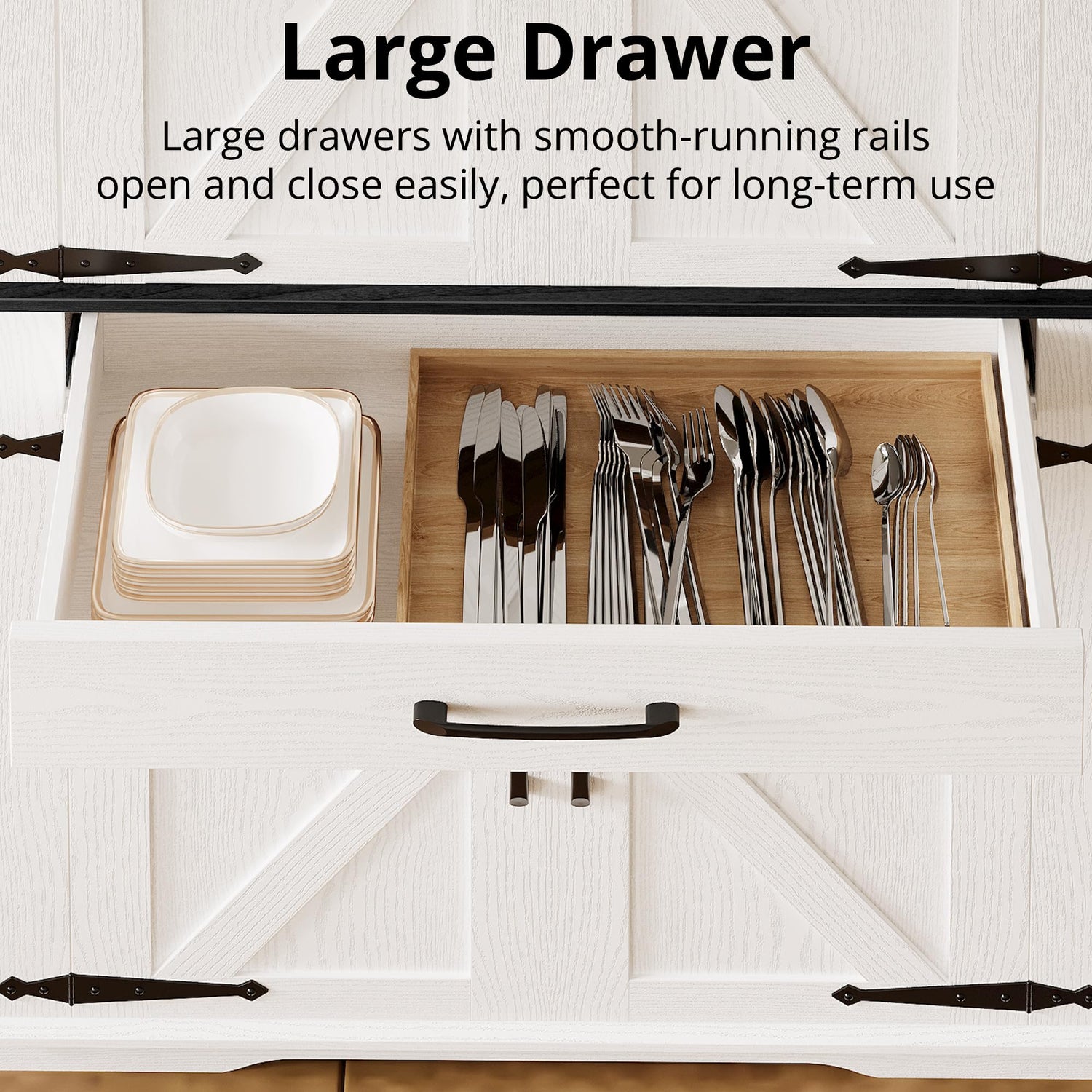 - Large Storage Space: The storage cabinet features two double doors and a large drawer, providing ample storage space. Whether for kitchen utensils, tableware, or other household items, it is easy to find a suitable place.