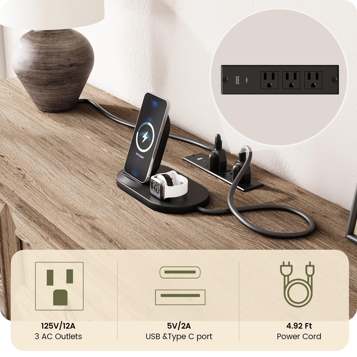 - Built-in Charging Station:No more messy wires! This Tv console for living room comes equipped with a built-in power strip: 3 AC outlets, 1 USB port, and 1 Type-C port. The opening in the back panel of the TV cabinet facilitates cable management and keeps the space neat and organised.