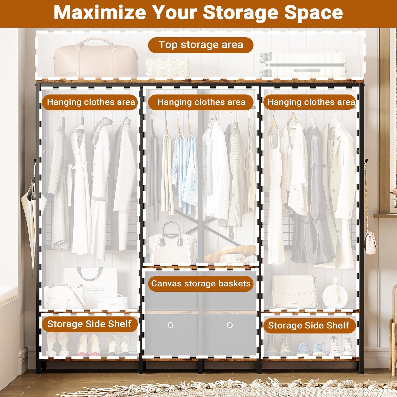 - Sturdy and Durable; This garment rack is constructed with a heavy-duty metal frame and thicker MDF board, ensuring durability and stability