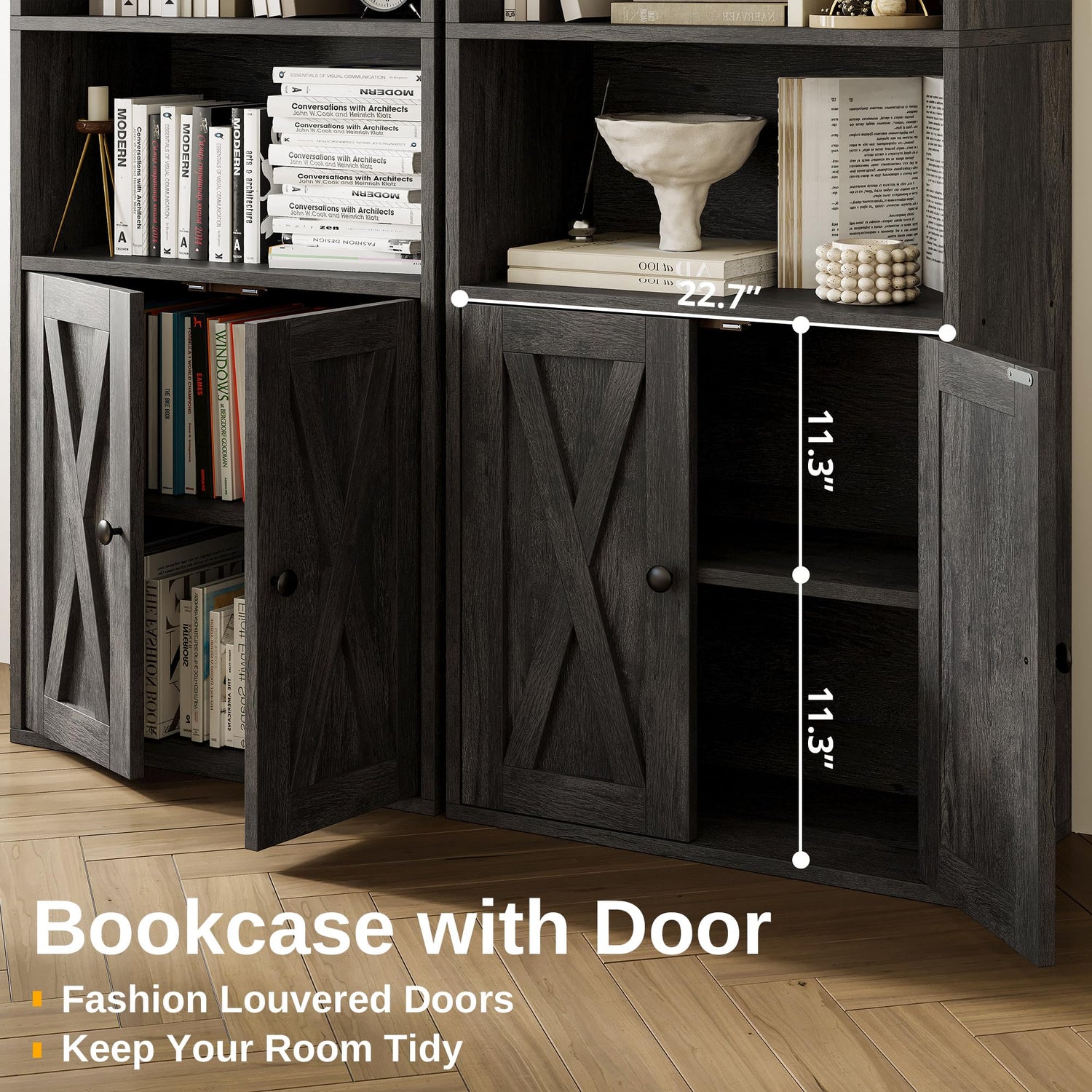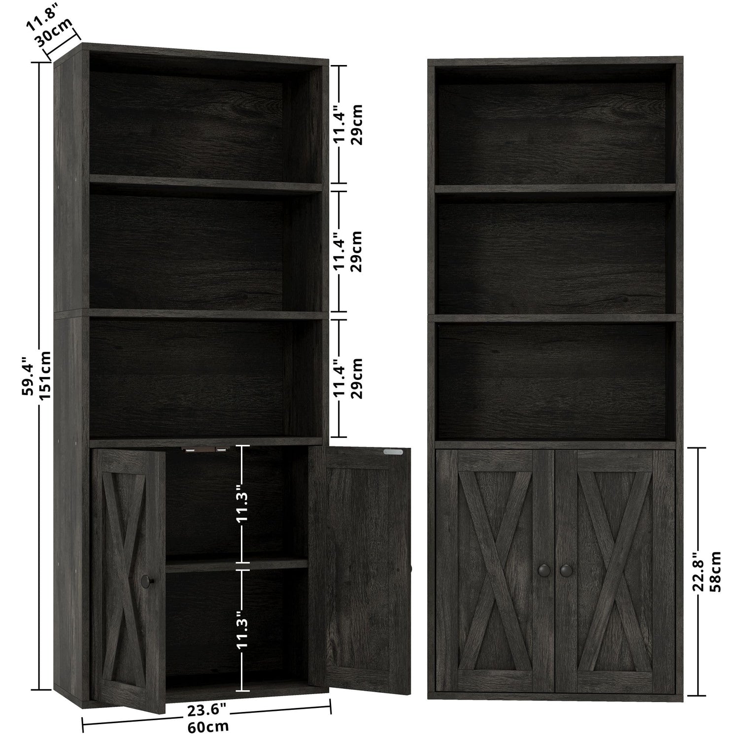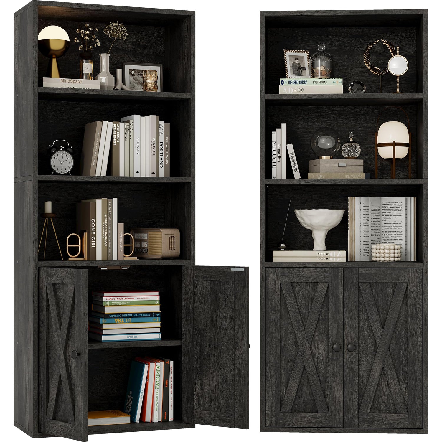IRONCK Industrial Bookshelves and Bookcases with Doors 11.8 in Depth Set of 2 Floor Standing 5 Shelf Display Storage Shelves Bookcase Home Decor Furniture for Home, Office, Living Room, Bedroom