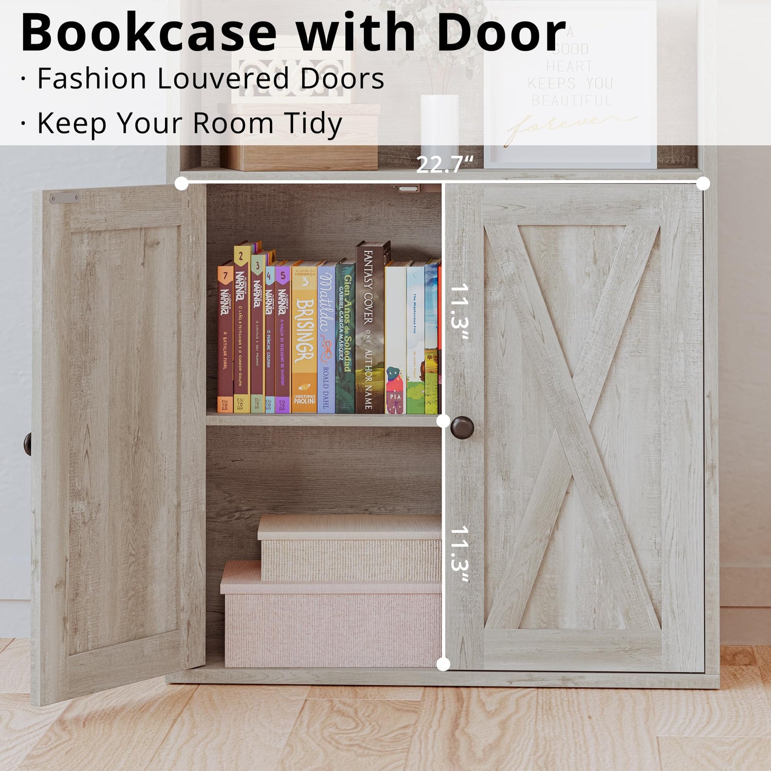 IRONCK 70-Inch Industrial Bookshelf with Doors - 6-Tier Floor Standing Storage for Home and Office