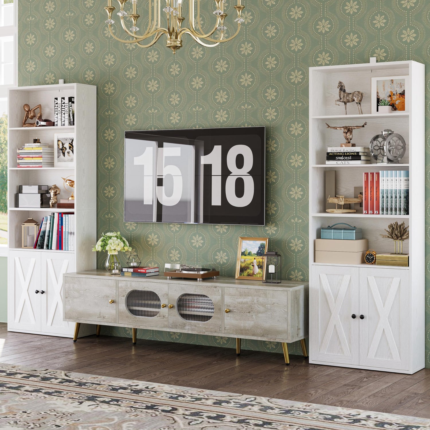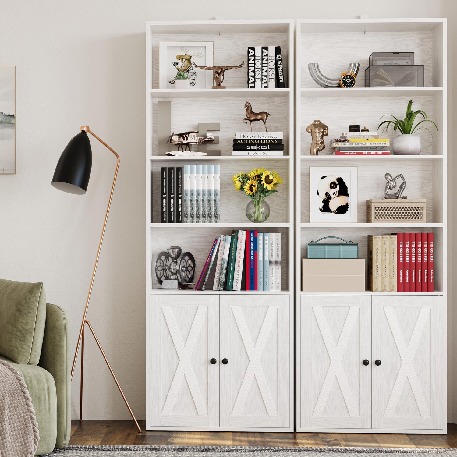 IRONCK Industrial Bookshelves and Bookcases with Doors Set of 2 Floor Standing 6 Shelf Display Storage Shelves 70 in Tall Bookcase for Home Office, Living Room