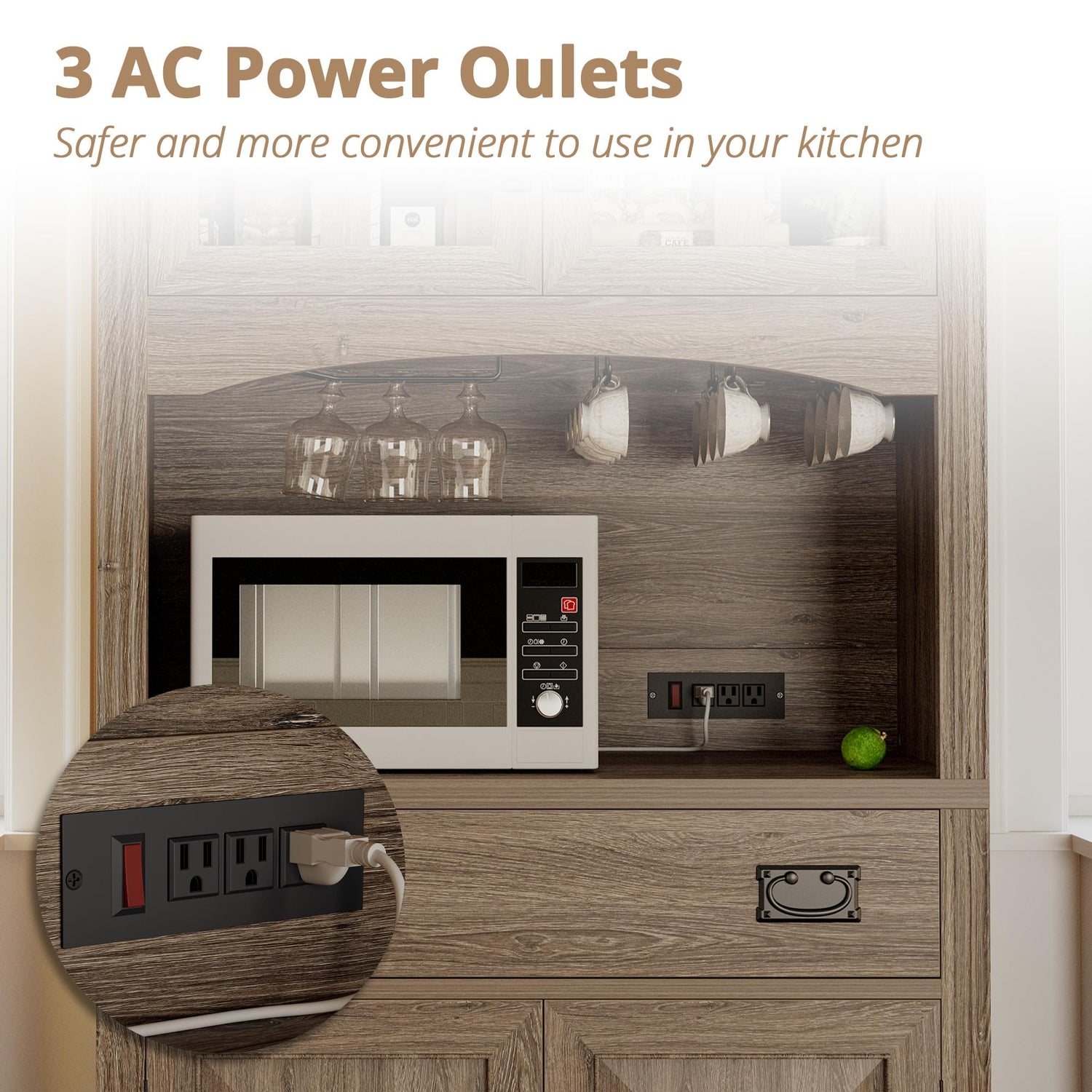 - MULTI-FUNCTIONAL: This kitchen pantry cabinett is equipped with 3 AC outlets, this cabinet allows you to conveniently charge or power your microwave, coffee maker, toaster, or any other.