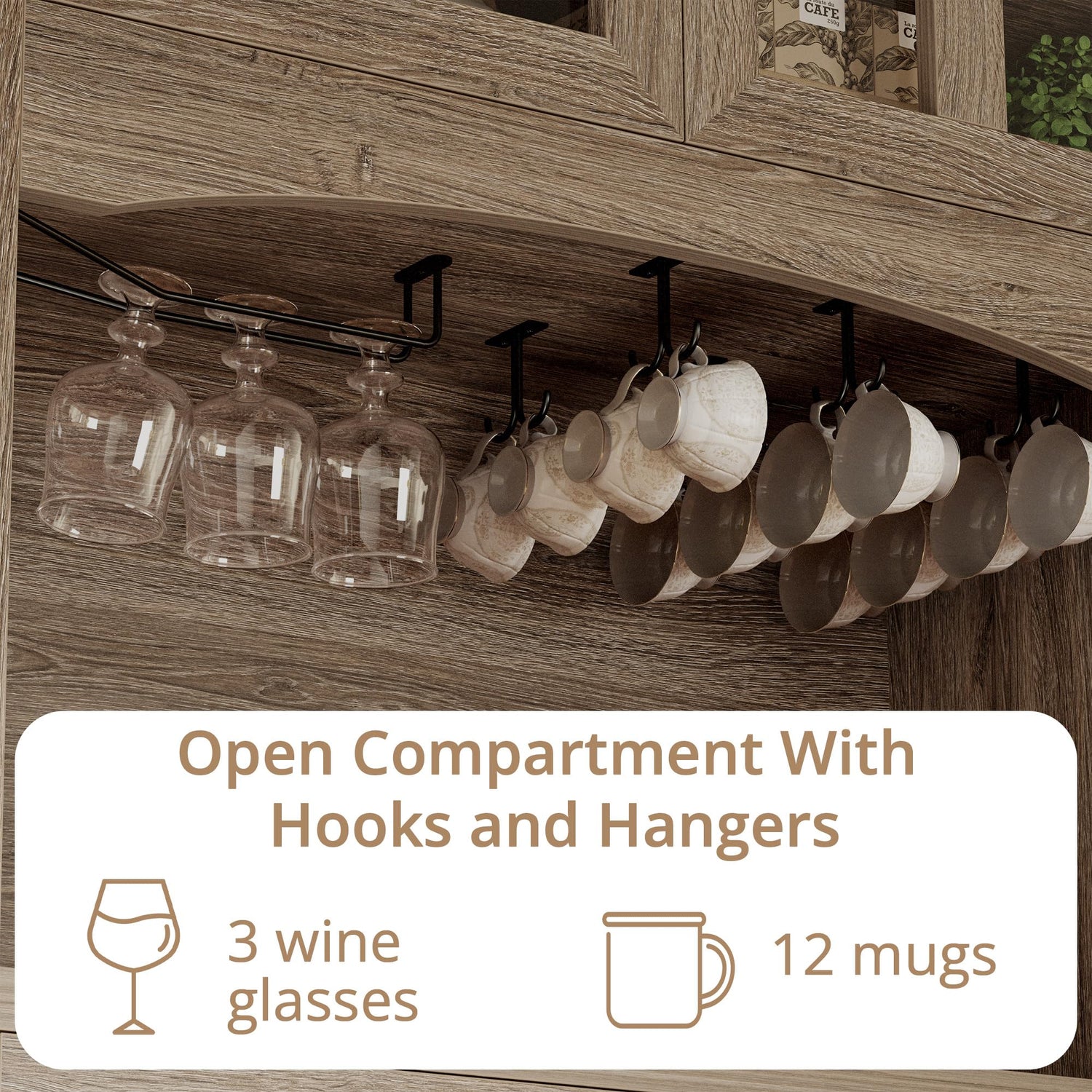 - VERSATILE STORAGE SOLUTIONS: Maximize your space with our 32.6 "W × 17.1"D × 68.5"H kitchen cabinet. It features 4 shelves, a smooth-gliding middle drawer, and hooks for 12 mugs & 3 wine glasses. Perfect for kitchens, coffee bars, and living rooms, enhancing home organization.