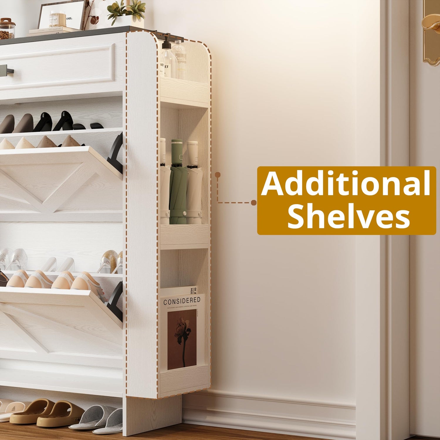 - Entryway Shoe Cabinet: Hidden shoe cabinet with 2 flap doors, neat and beautiful appearance, with striking farmhouse style design, suitable for many different home styles