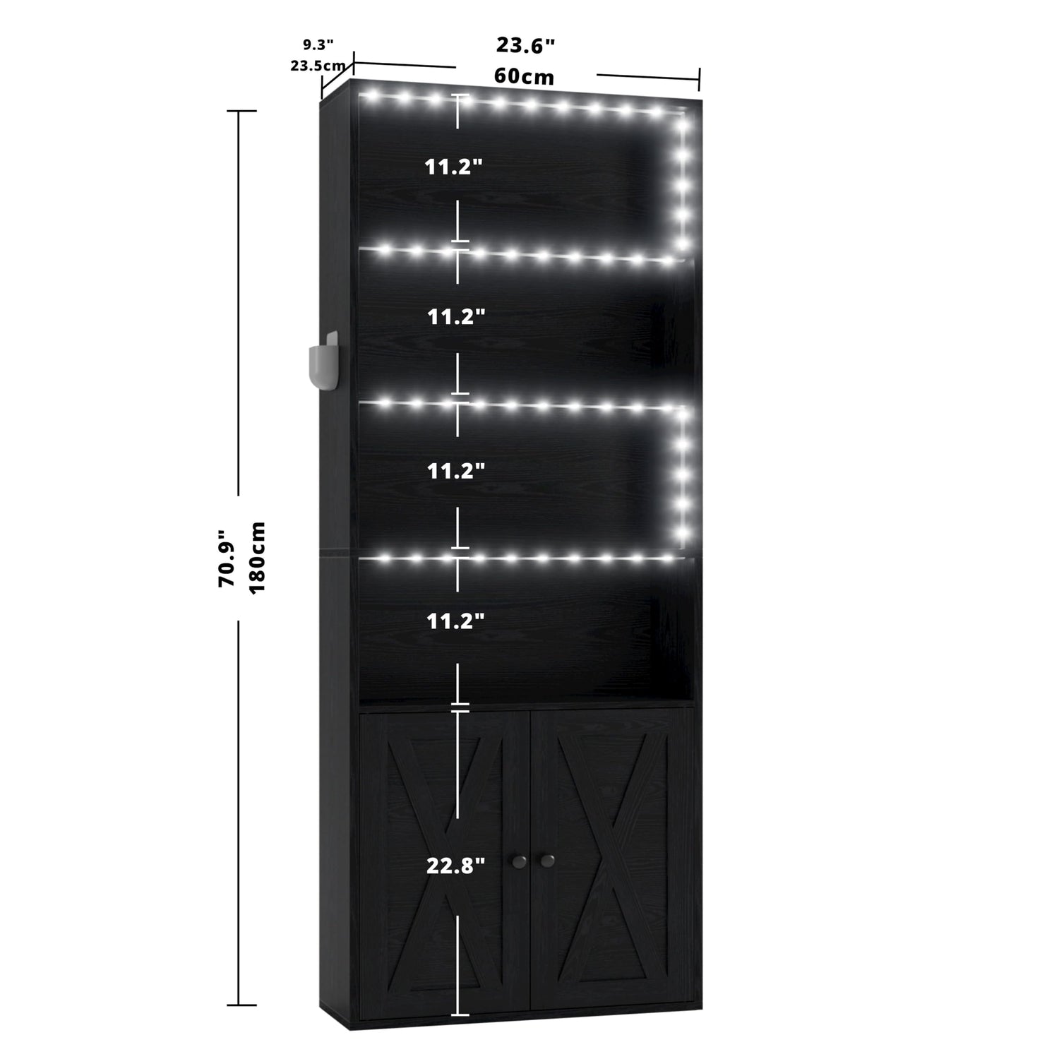 IRONCK 70-Inch Tall Industrial Bookcase with LED Lights for Home Office and Living Spaces