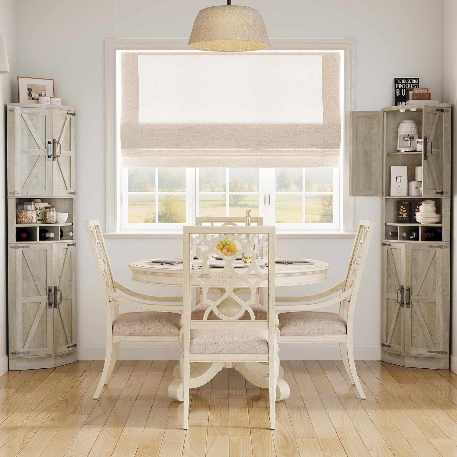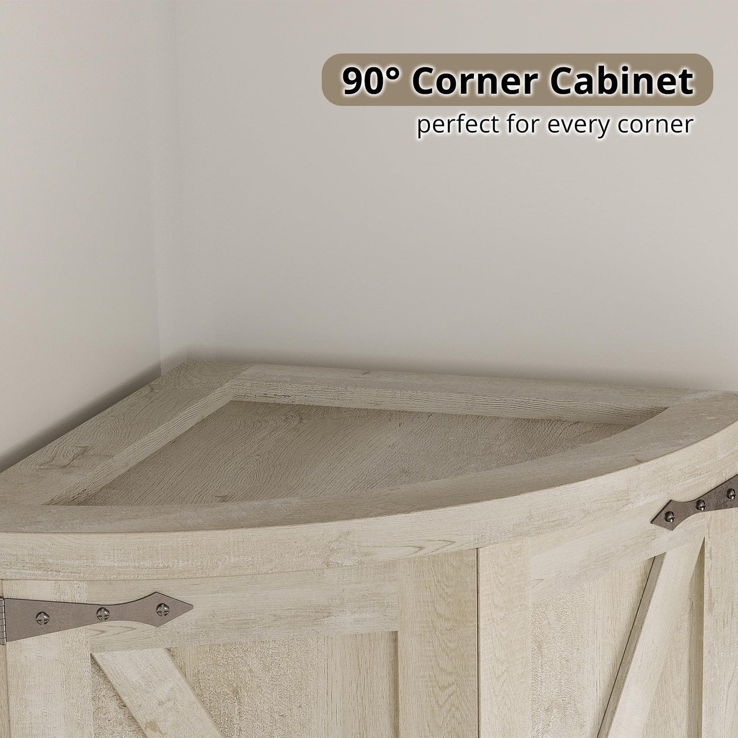 - Farmhouse Style: With its rustic barn door style and spacious design, this corner storage cabinet is perfect for dining room, kitchen, bathroom and other corner scenes. Quality metal handles and accents of metal trim add character and charm to your home