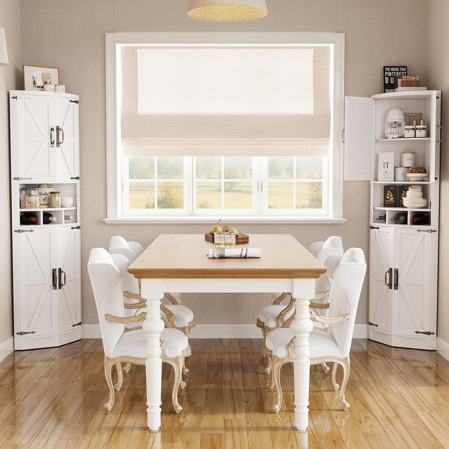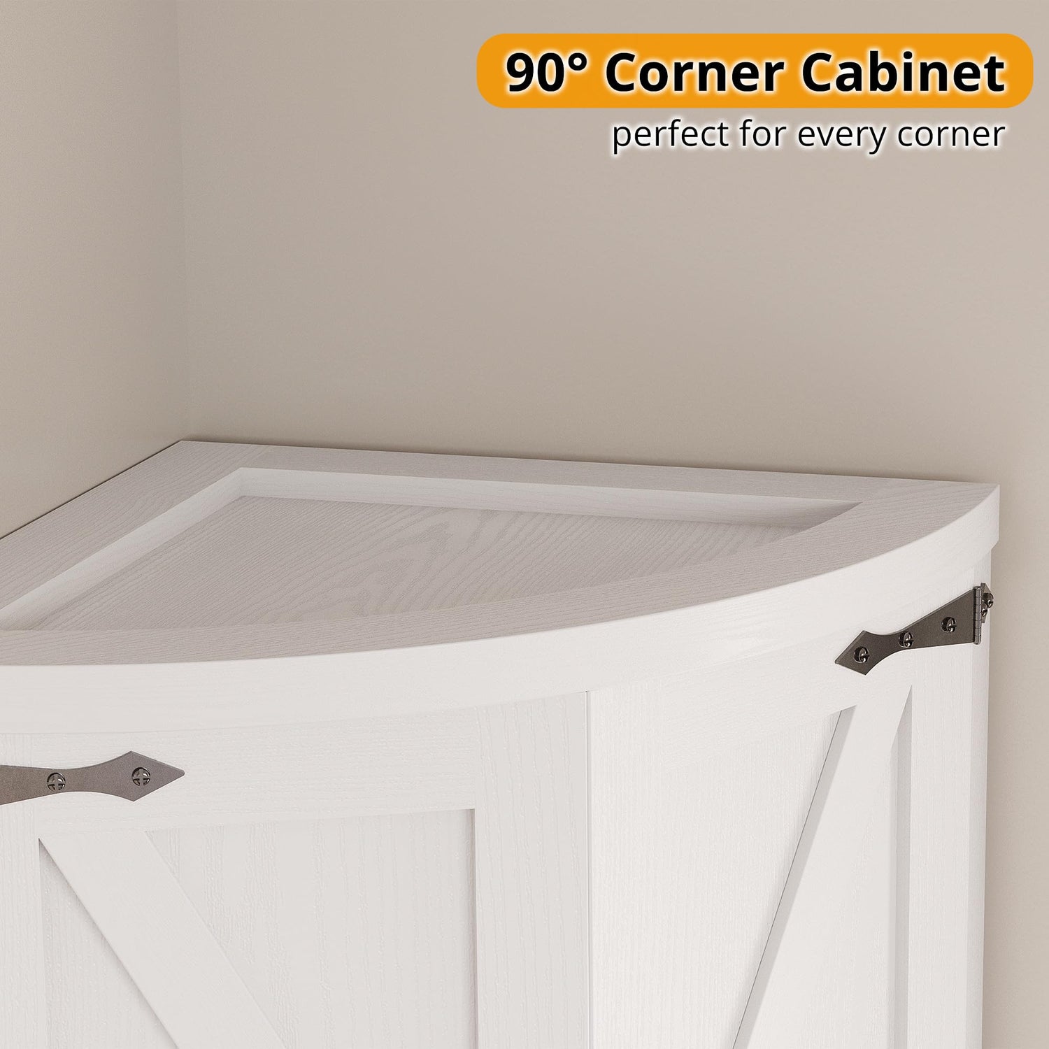 - Farmhouse Style: With its rustic barn door style and spacious design, this corner storage cabinet is perfect for dining room, kitchen, bathroom and other corner scenes. Quality metal handles and accents of metal trim add character and charm to your home
