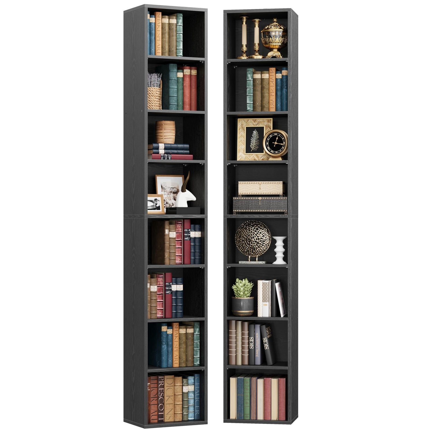IRONCK Tall Narrow Bookshelf 8 Tiers 71in Set of 2, Compact Corner Bookcase, Easy to Match for Living Room, Office, Study, Bedroom