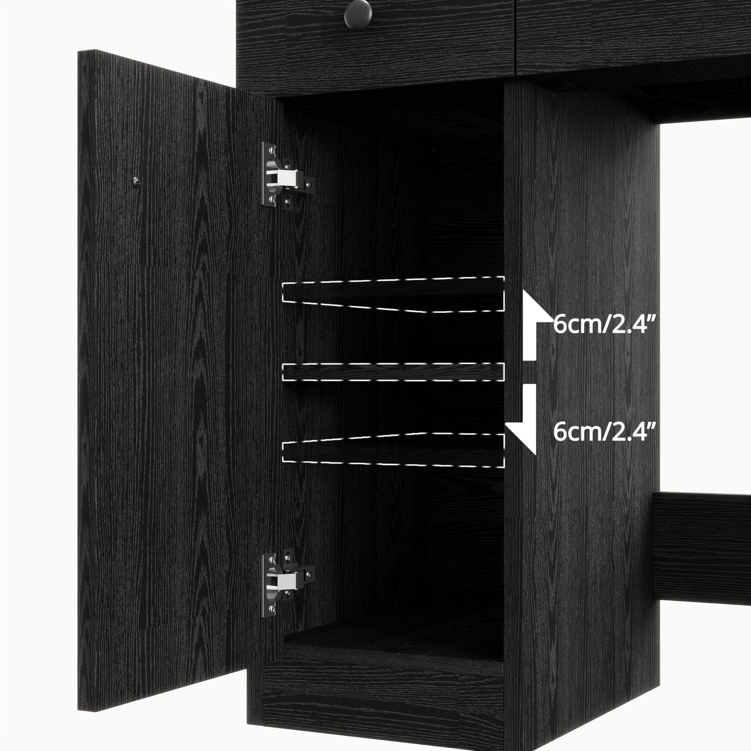 - Well Organized : Large table top with three open bookcase,three cubies,two drawers and one storage cabinet with adjustale shelf. to keep your makeup table neatly organized.beside, come with Expandable and Foldedable countertop for more needs