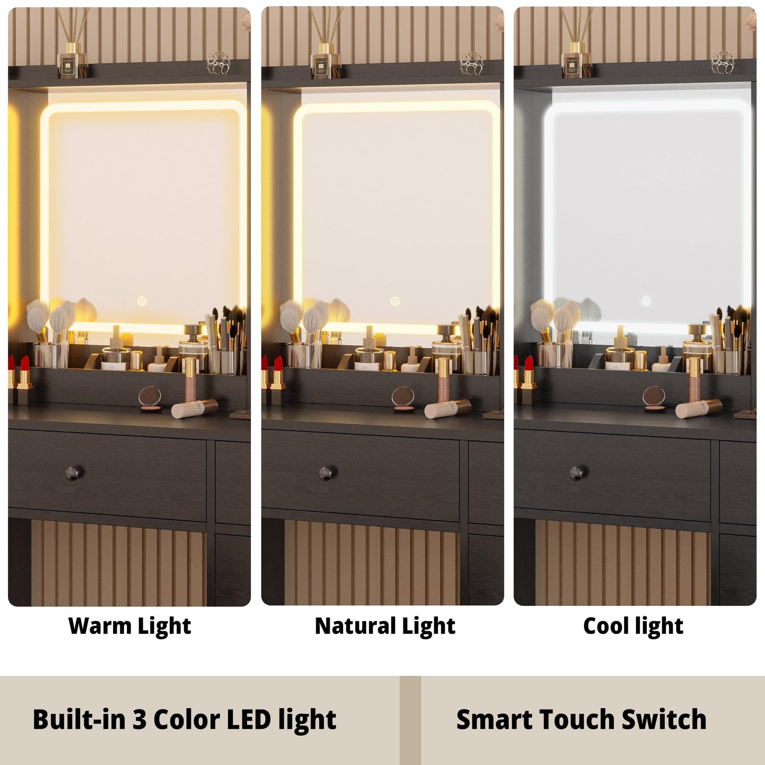 - With LED light: This makeup table has an adjustable LED light strip and 3 light modes, you can adjust the brightness according to your makeup needs and create the best makeup every day.