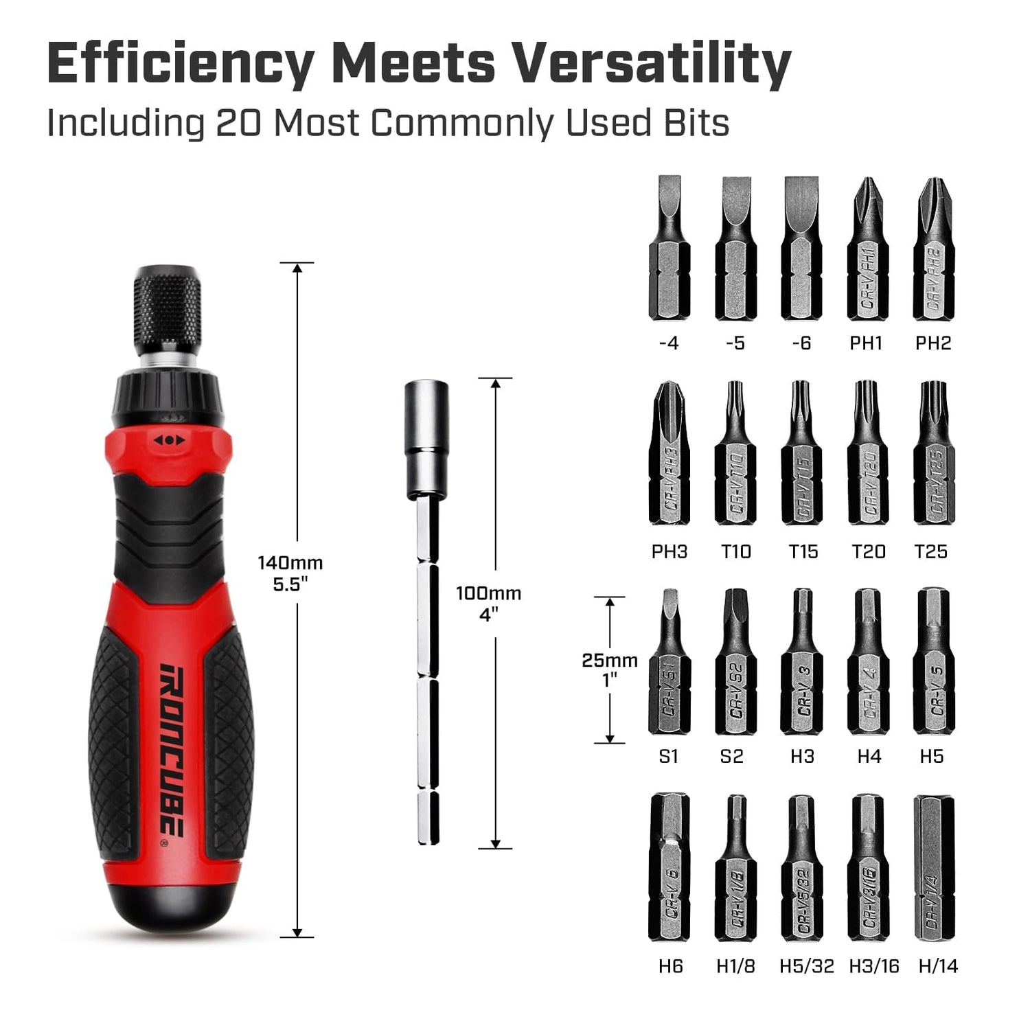 IRONCUBE Multi Ratcheting Screwdriver Set: 21 in 1 Magnetic Multiple bits Suitable for Everyday Household Use