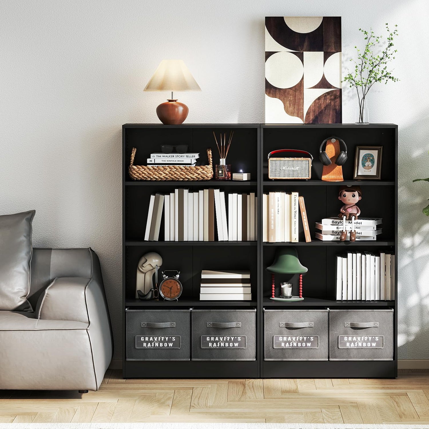- Open Bookcase with Sturdy Construction: IRONMIX black bookcase 4 tier is made of 0.7mm high-quality cold-rolled steel, which is stronger than typical steel, not easily deformed. Reinforcing ribs at the waist and bottom of the back panel, further increasing the strength of the library bookshelf and bookcase