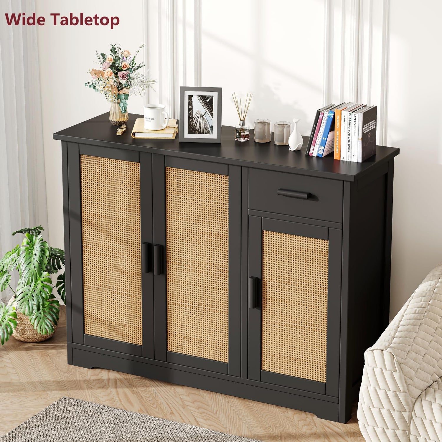 - Delicate Design: This buffet sideboard is a combination of rattan doors and black appearance, giving a special Bohemian style. It is easy to comply with most of house styles, such as modern, traditional, farmhouse and industrial etc.