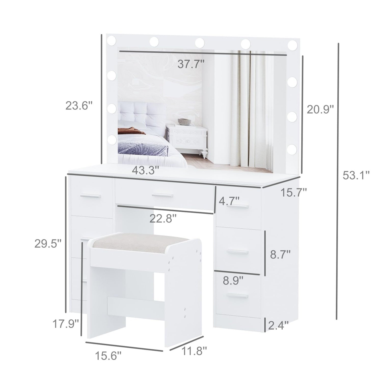 - Stylish & Large Mirror Design: White vanity desk and stylish lighted mirror take your beauty needs into first account, what’s benefit that the distance from drawer bottom to the floor is 24.8’’, surely it meets your daily sitting height