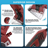 - 【Safe & Anti Dust】This mini electric saw is equipped with protective cover and needs to press the power switch and lock button at the same time to turn on the machine, which can ensure the safety during working. And there is a amazing dust-poof system with this mini electric tile cutter, which has several small holes on the protecting plate for dust collection and a 1.68m/5.5ft dust extraction hose.