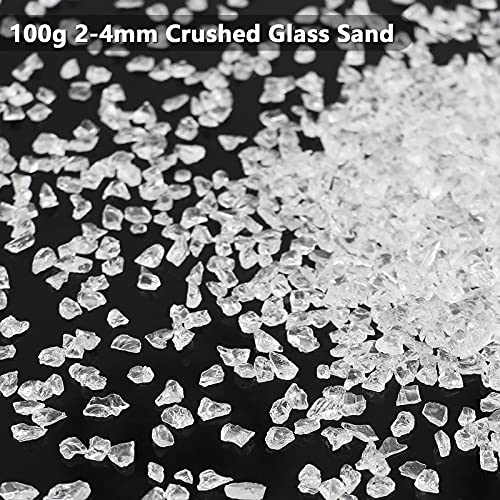 - COLOR & SIZE & WEIGHT: Metallic sparkling Clear, 1.5-4mm irregular crushed glass chips, 100g in total. [WARM TIP] While we are trying to take as accurate pictures as possible, differences in light and screens might affect the colors, therefore please allow slight variations.