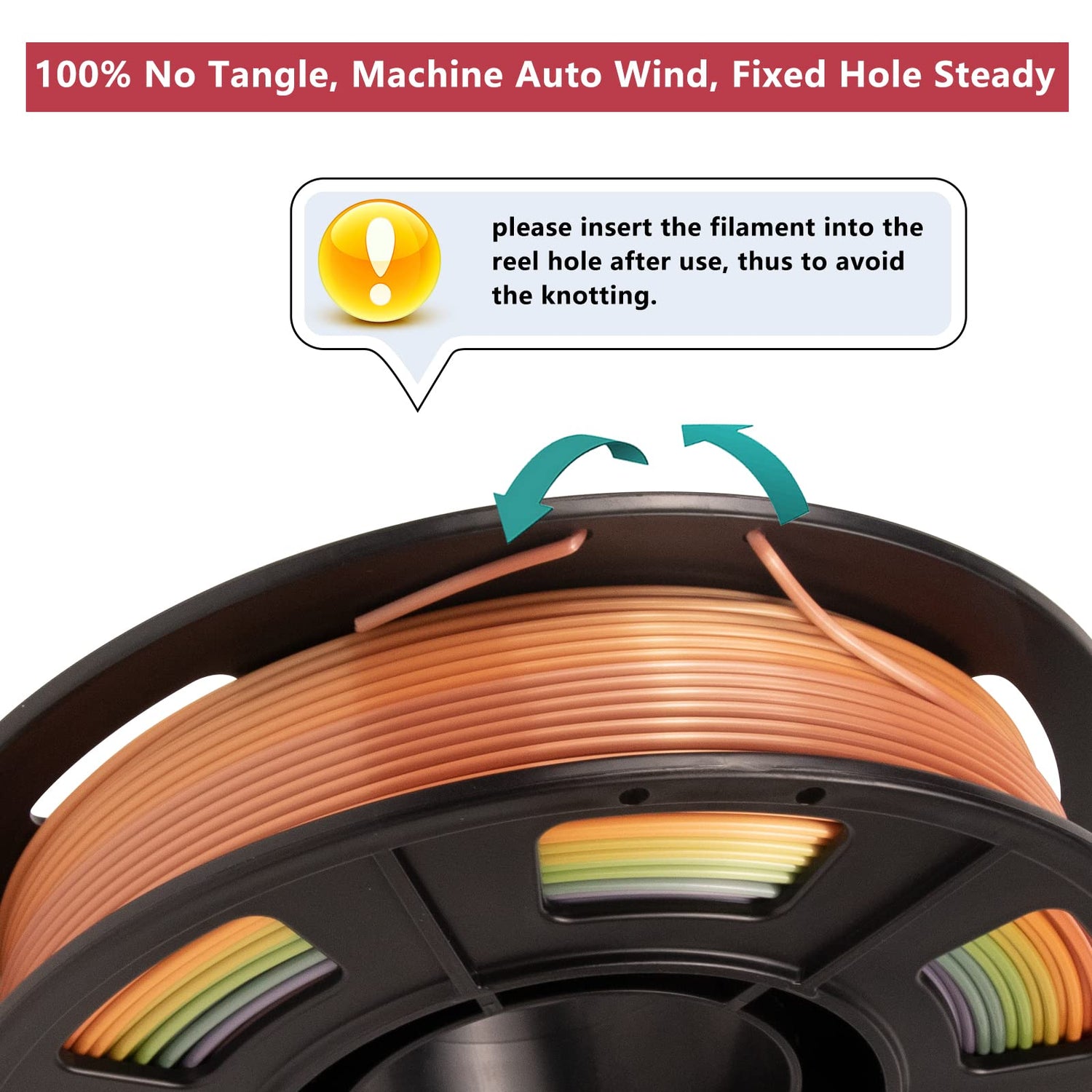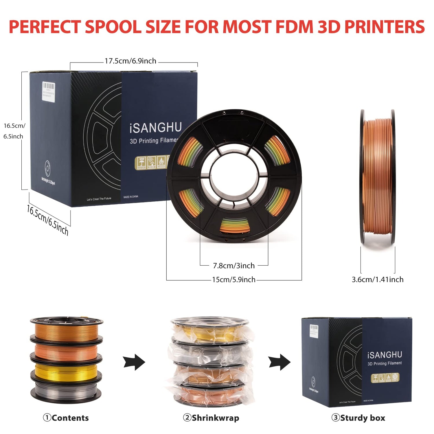 - [Beginner Friendly & Wide Compatibility]-The multi color pla filament has an excellent threshold overhang angle. Raft and support are very easy to remove. The storage hole is designed to place the end of the filament to prevent tangling, ensuring that you spend less time troubleshooting to get started with basic settings. Thanks to the high-quality standards in terms of manufacturing accuracy. iSANGHU color changing filament is Perfectly compatible with most of the common 1.75mm FDM 3D Printer