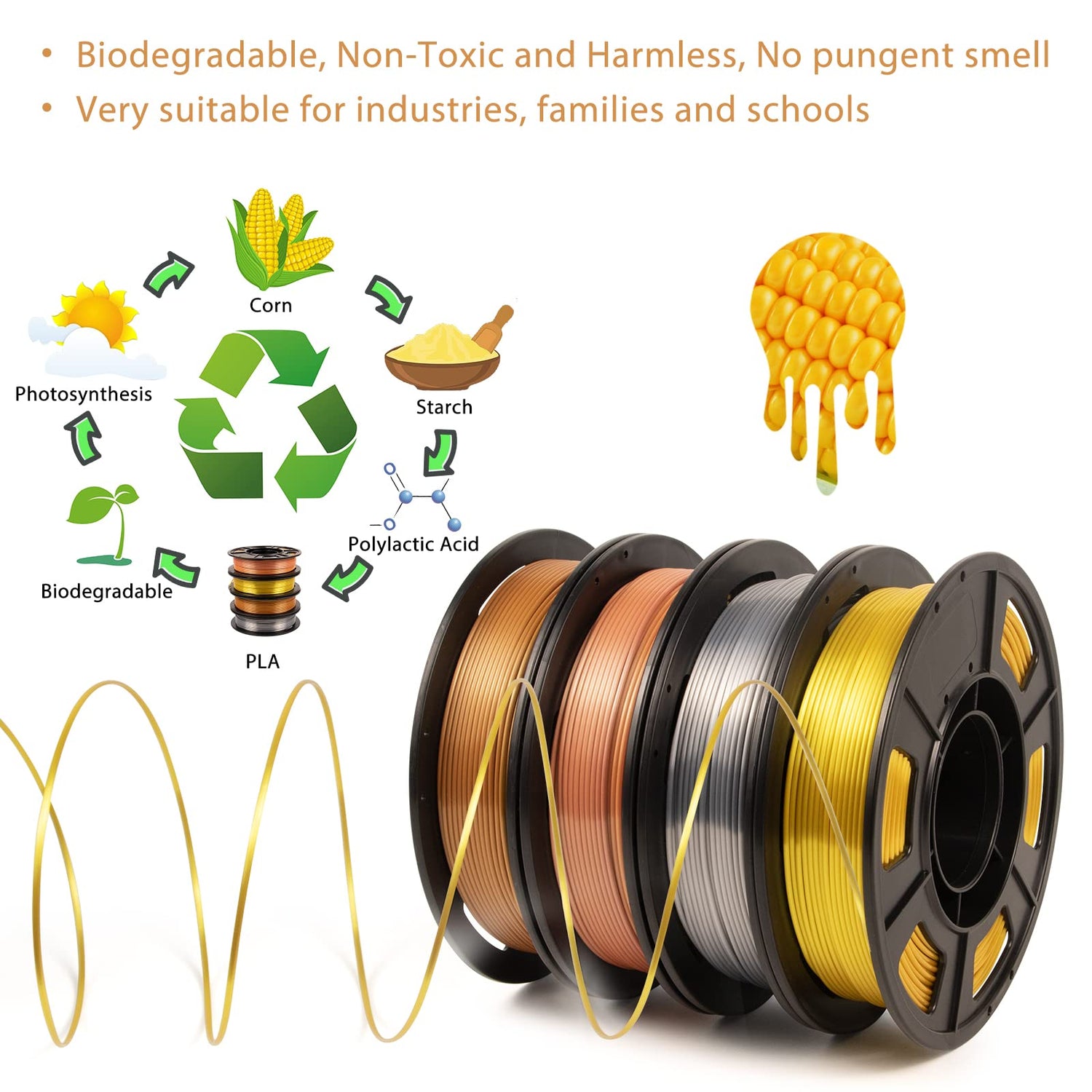 - [Toughness Enhanced & Rigidity]-3d printer filament 4 colors are a dramatically improved fracture toughness enhanced PLA filament which has an excellent combination of toughness and rigidity, which can fully meet your needs for high tenacity functional parts printing projects