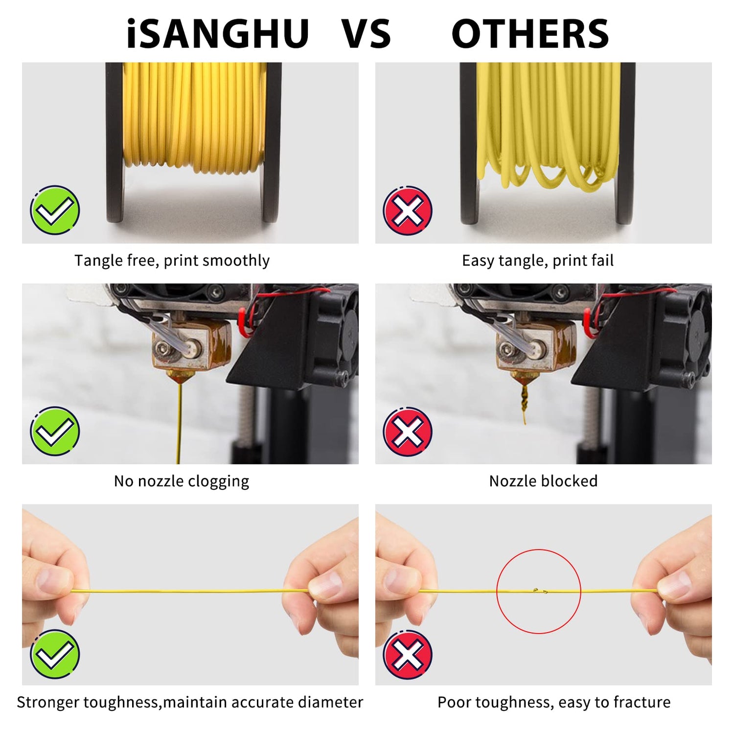 - [Neat Spool & High Purity PLA Filament]-iSANGHU 1.75 pla filament multi pack is made of high purity corn starch with low shrinkage and superb layer bonding. Full mechanical winding and strict manual examination, guarantee the filaments neatly and easy to be fed. There's less pulling and twisting.