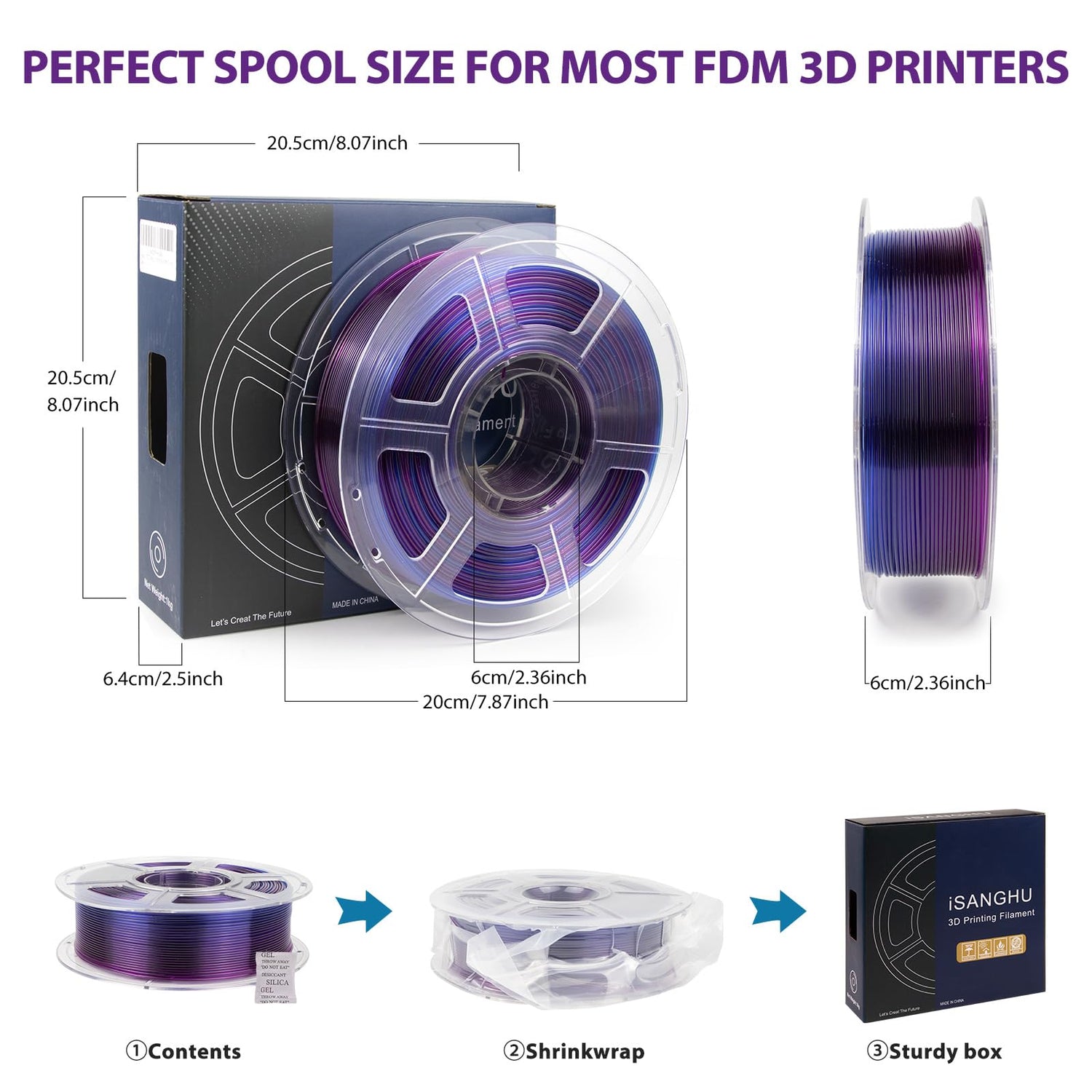 iSANGHU Transparent 3D Printer Filament 1.75mm, Multicolor Color Changing Gradient Blue to Purple PETG Filament with Light Transmission, Clear PETG Filament 1kg(2.2lbs) Spool