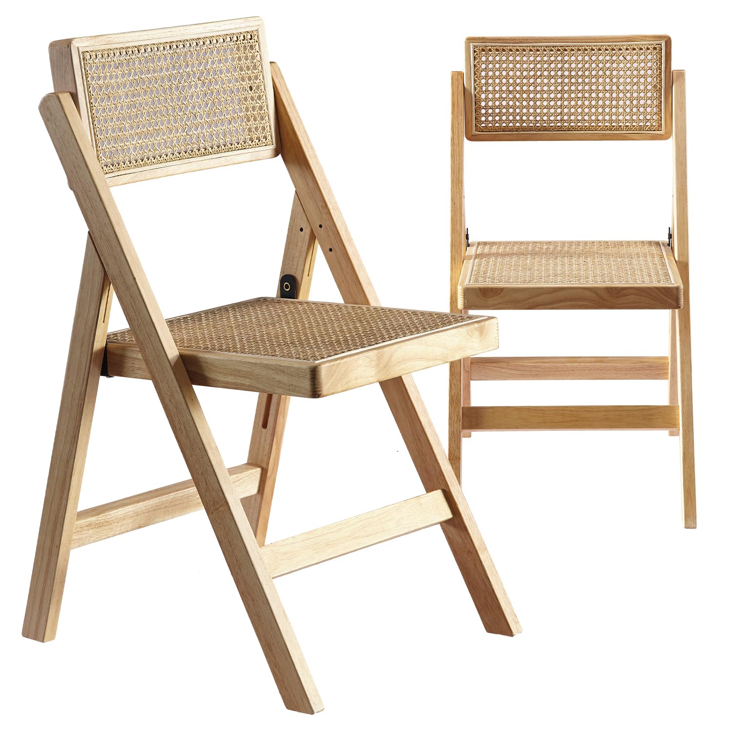 ISL Furnishings Ibiza Rattan Chair, Natural, Set of 2 – Modern Folding Rattan Chairs for Outdoor Dining, Patio, Accent Chair for Living Room and Office, Foldable Space-Saver Design