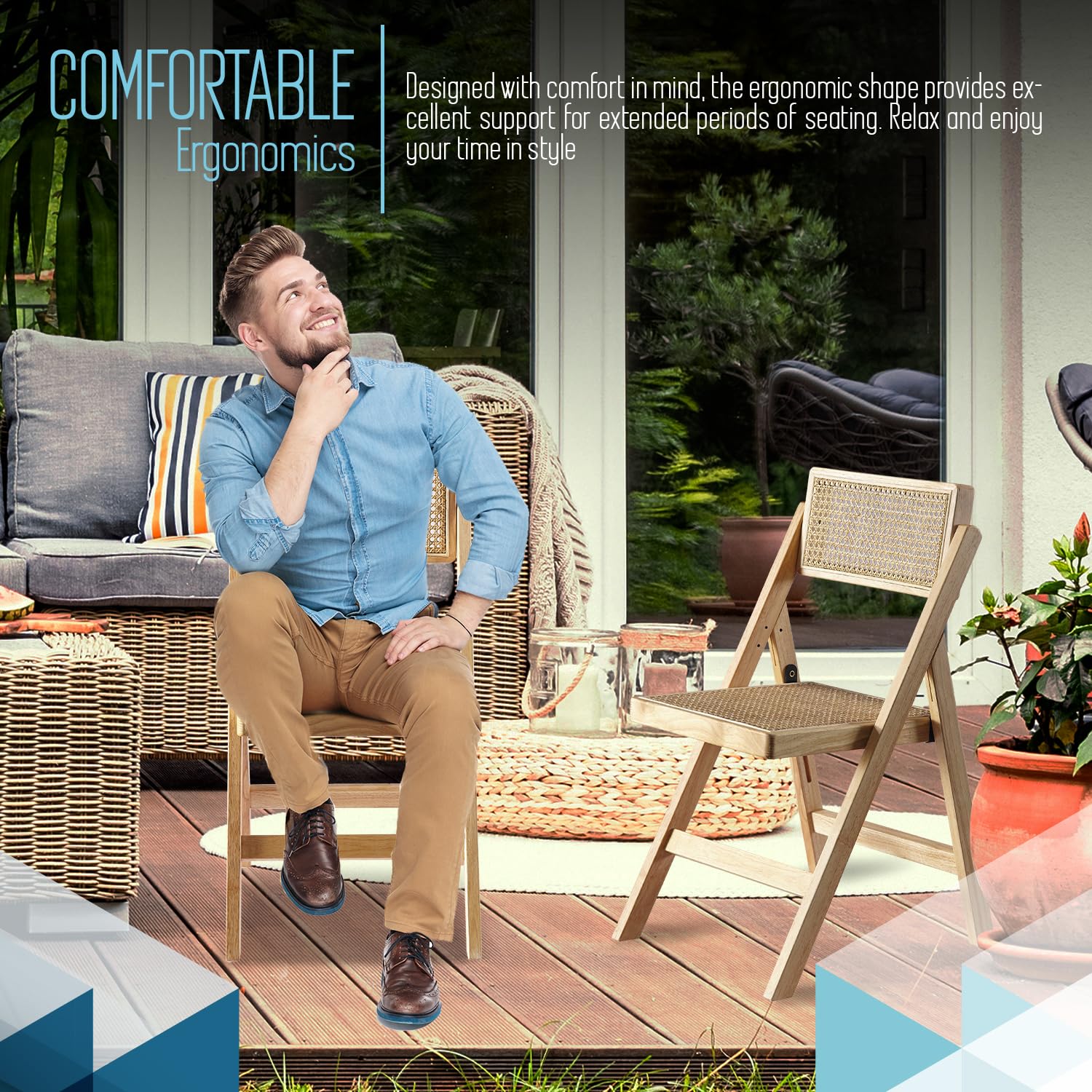 - Versatile Use – These folding chairs are great for indoor and outdoor use. These can be used as dining chairs, patio chairs, living room chairs, boho accent chair in the office or at home. Enjoy enhanced comfort with the ergonomic design of these foldable chairs.