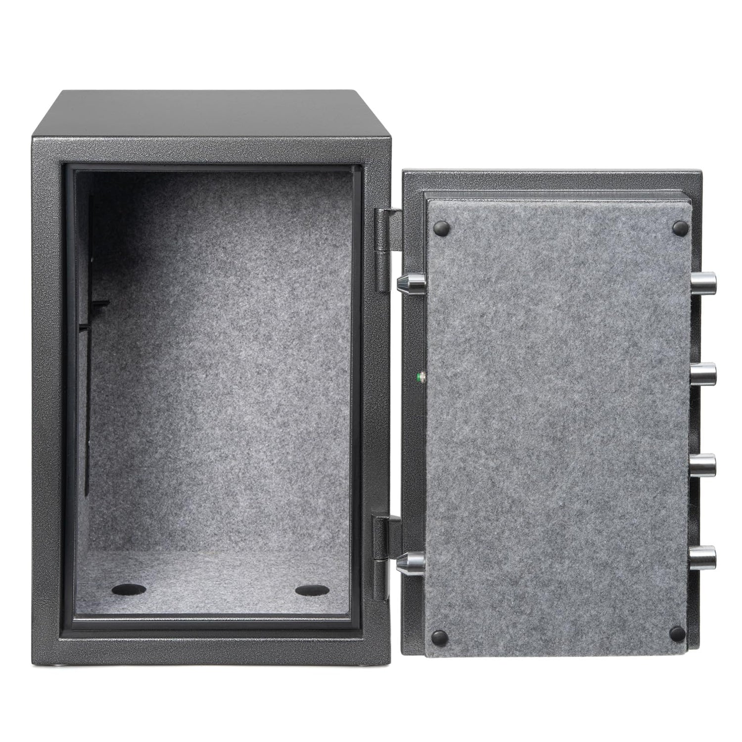 - 🔒 Anti-Pry 2-Sided Security Bolts: Six solid steel locking bolts—two on each side—deliver 360° anti-pry protection. These thick bolts engage deeply into the frame, making the personal safe highly resistant to forced entry attempts. Ideal for home, office, or business use where theft prevention is critical.