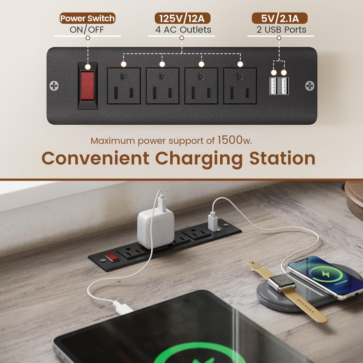 - 【User Friendly】The farmhouse executive desk includes a built-in power strip with 4 outlets & 2 USB Ports provides convenience for charging your gaming gear, tablet、printer or phone.Don't worry about not having enough power sockets. Also includes an on-off switch, thanks to the on-off switch, one-button power off to ensure safe electricity use, which strengthens security.