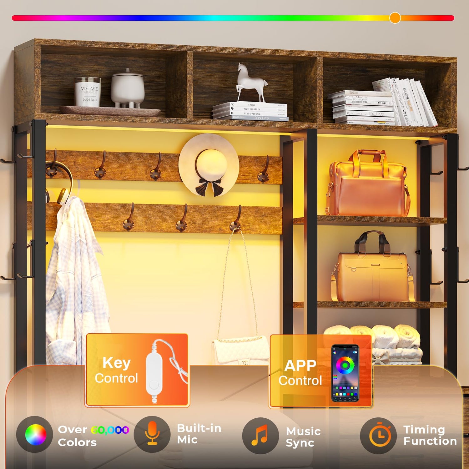 - 【Cool & Smart Led Light】The hall tree comes with RGB LED light , remote control via APP, Over 60000 colors and 29 flashing modes for your to choose. Led lights with music sync function, built-in sensitivity adjustable mic, led light color will change with the rhythm of the sound and music.