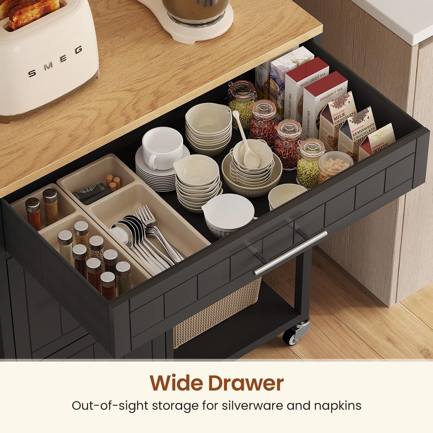 - 【Smart Tall Shelf Design】Unlike other kitchen islands, ours has two extra-tall shelves—bonus storage at eye level! No more bending over—perfect for spices, cups, and everyday essentials.
