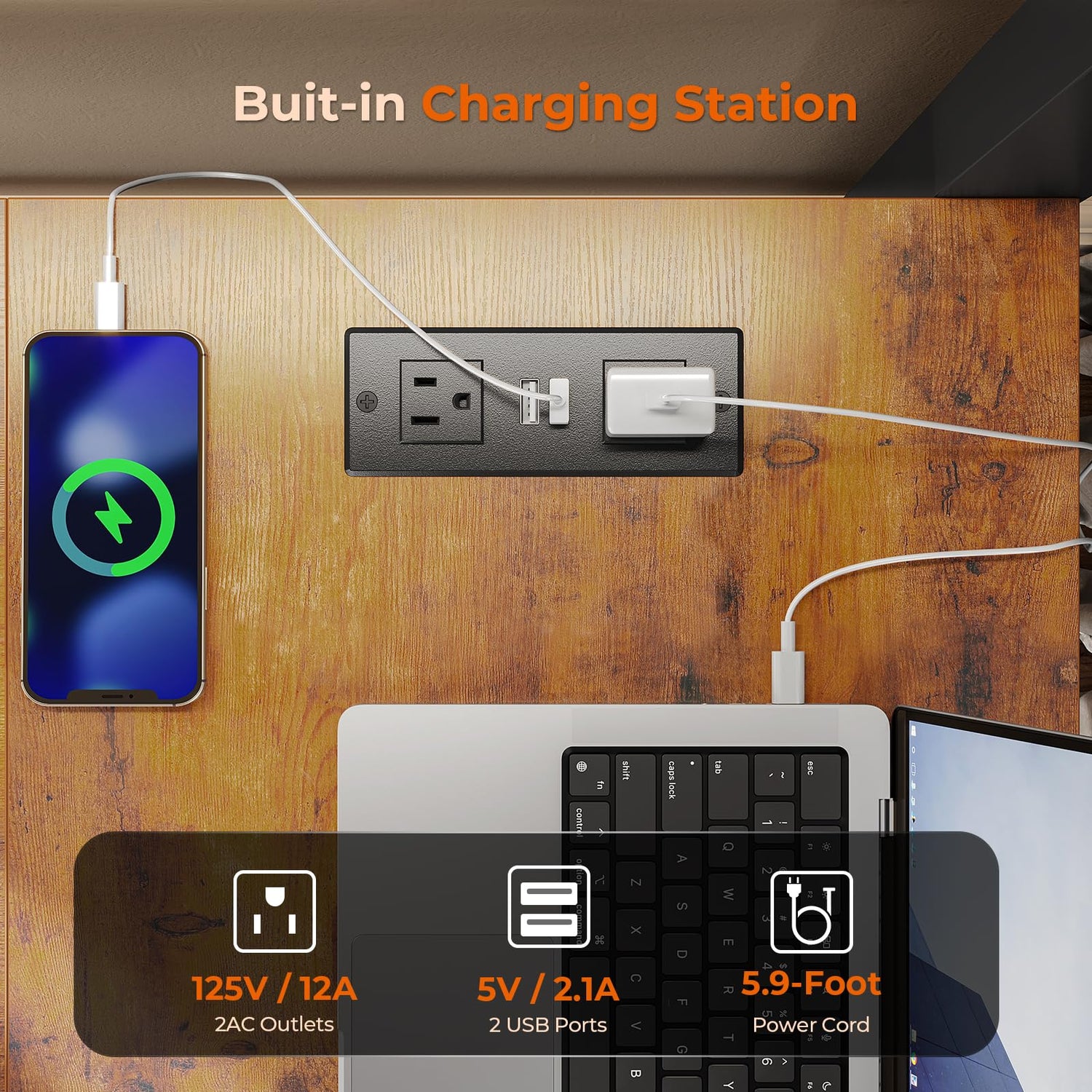 - 【Loft Bed with L-Shaped Desk and Outlets】The loft bed can be configured into 2 separate spaces. While satisfying rest, there is 59 inches of activity space under the bed. You can turn the space into a work area, game area, reading area, or craft area, etc. The extra-large L-shaped desk of 78.74 inches x 39.37 inches can meet all your needs. The L-shaped desk has a built-in charging station, which is convenient for charging your gaming devices, computers, printers, or mobile phones.