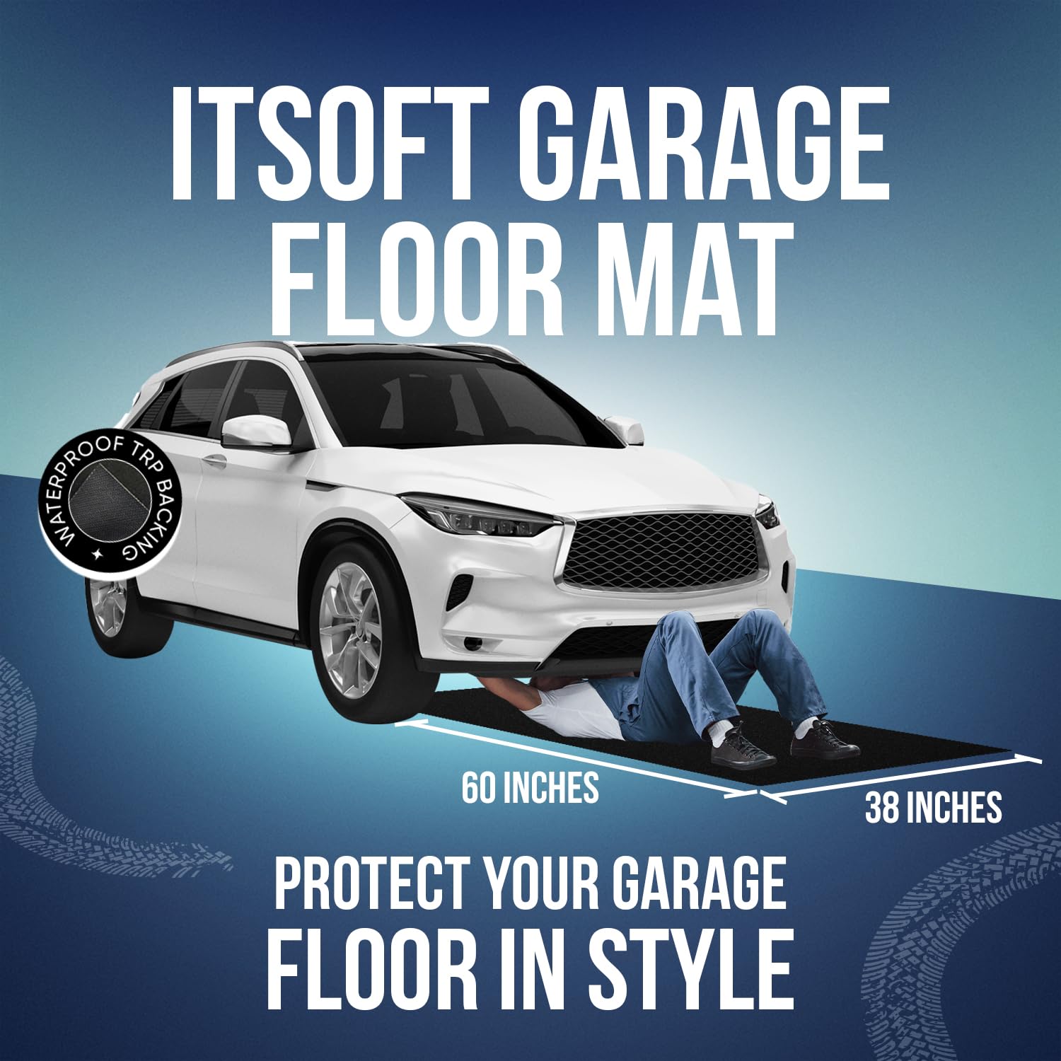 ITSOFT 60 x 38 in - Oil Absorbent Garage Floor Mat and Mechanic Pad - Protects Floor from Spills, Drips, Splashes and Stains | Washable, Cut to Size, Non Slip and Waterproof Backing Layer