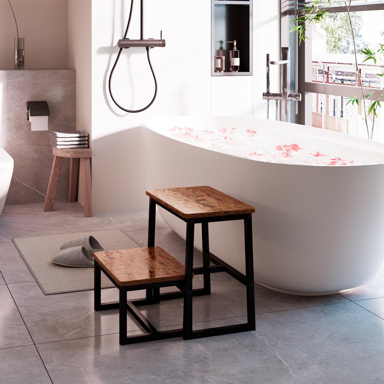 - 【3 in 1&well designed】iTsst step stool can change three forms.①Solid 2-step stool ② Small stool can be stored underneath the high stool ③ Can be split into two stools for separate use.