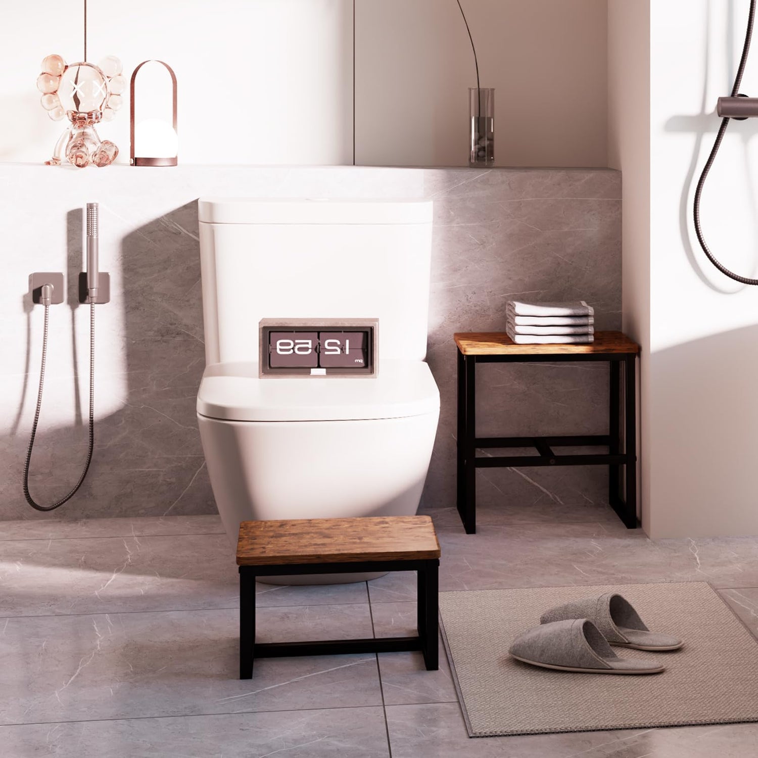 - 【 Sturdy &Durable】Both tall and small stools can hold up to 500 pounds. It is made of thickened quality wood (MDF) and a metal frame, with reinforced cross bars designed in the middle to make the stool stronger and more stable.