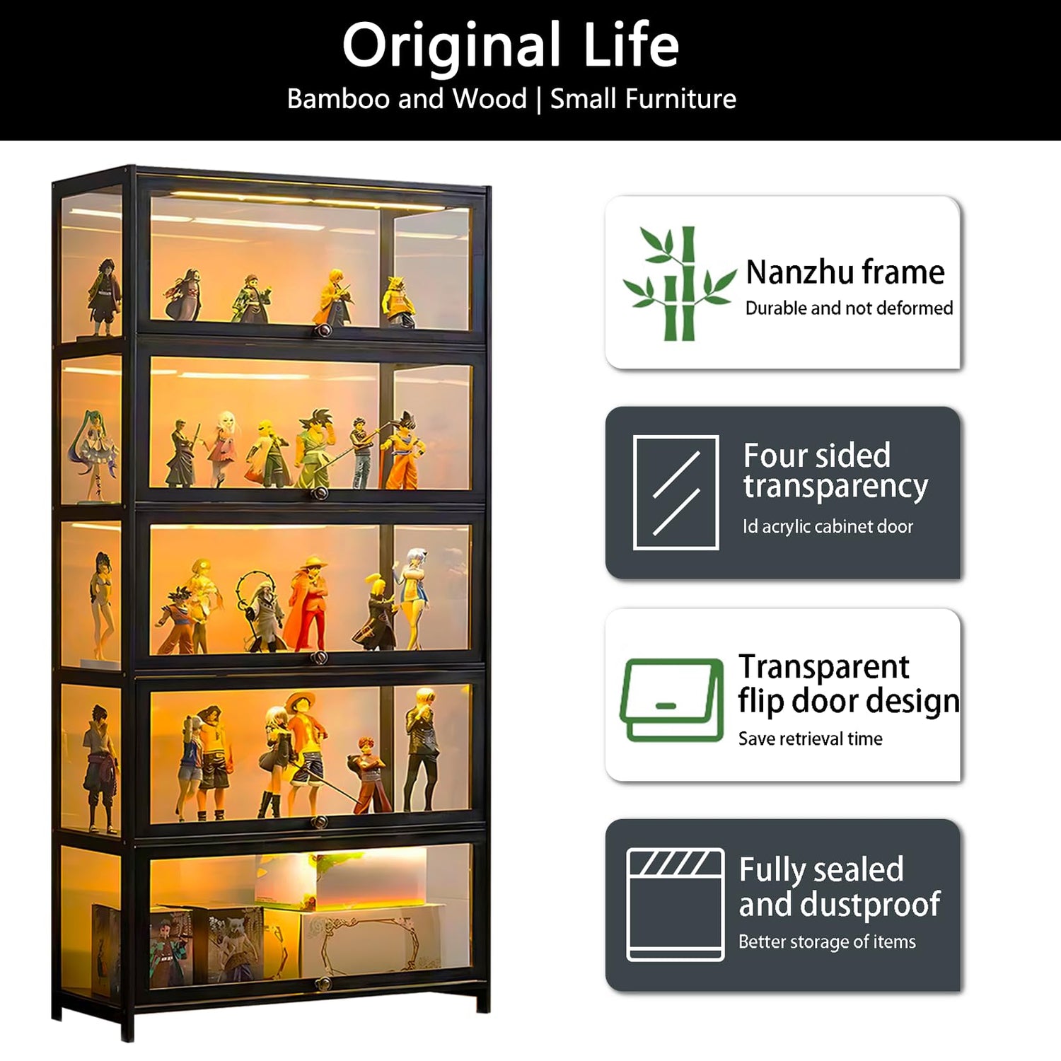 - πγπππ«π²π₯π’π ππππ’π§ππ ππ¨π¨π« πππ¬π’π π§γ- HD figure display cabinet is made of acrylic cabinet door + bamboo material frame, front,left, right, three sides are made of high transparent acrylic material, you can easily see your collection of gift toys in the display case.
