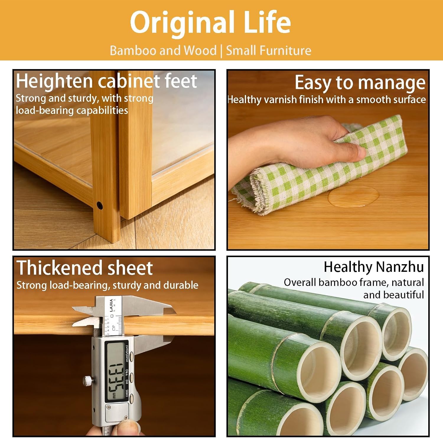 - High Quality Material - The showcase is made of acrylic panel and solid bamboo boards, which ensure the stability of the display cabinet and provide long-time service. The bamboo material won't be affected by damp or rainy days.cabinet door are made of high transparent acrylic material, you can easily see your collection of gift toys in the display case.