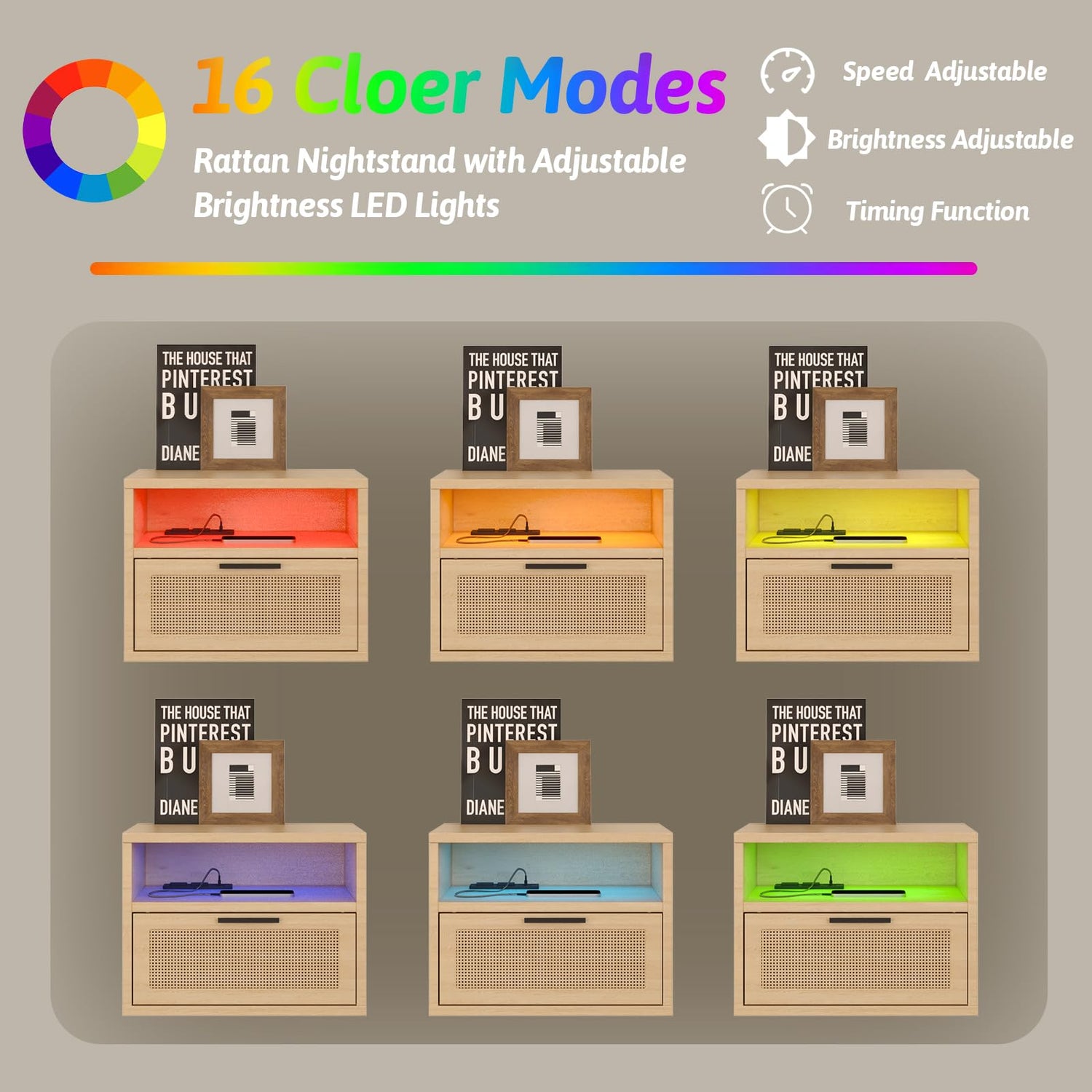 - Experience the Cool Effects of RGB Lighting: With 15 adjustable colors and 4 modes, you'll always find the perfect lighting to set the mood in your bedroom. Use this LED nightstand as a nightlight, and control the RGB lighting with the wireless remote. Enjoy dynamic lighting effects (see images for more lighting modes).