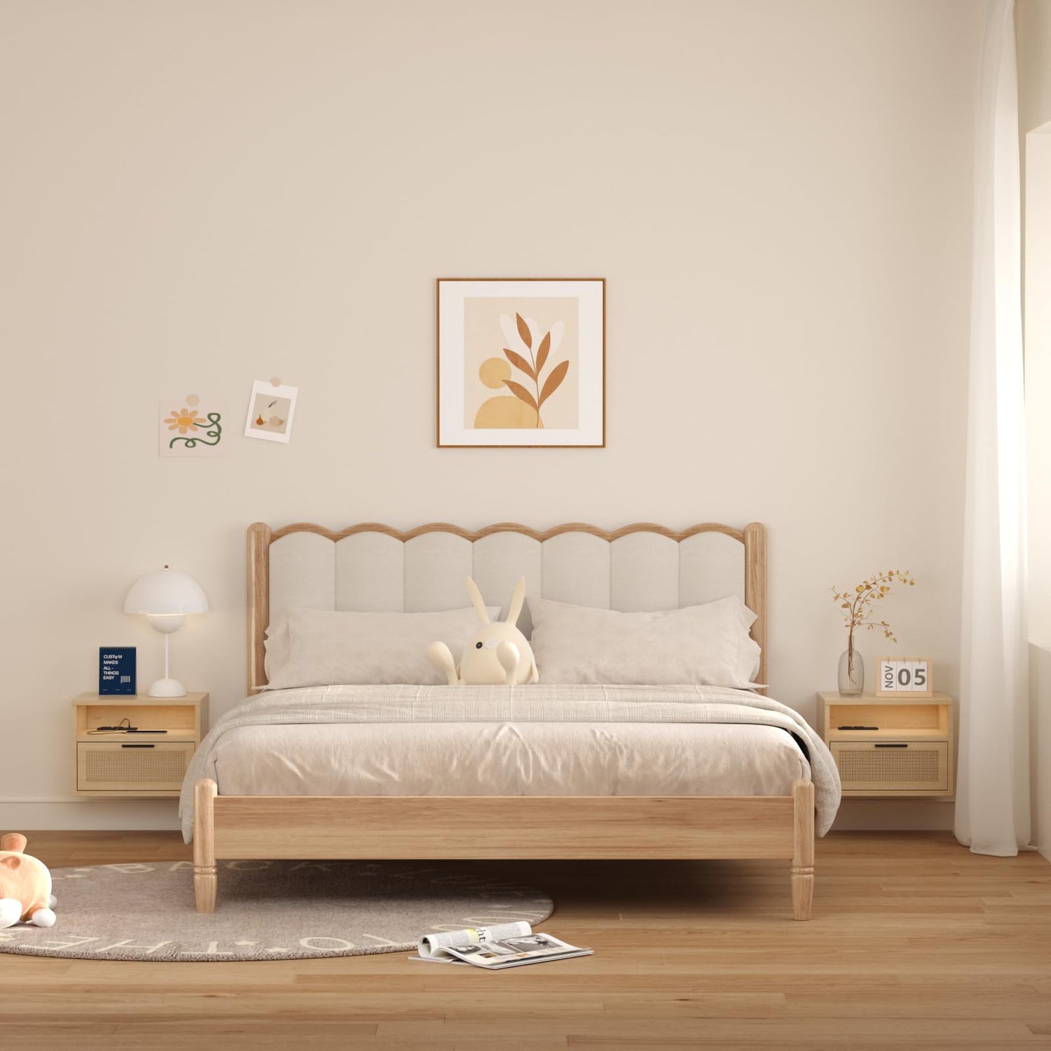 - Perfect Blend of Modern Design and Functionality: Our floating nightstand features a rattan design with a modern bohemian style, adding a touch of elegance to any room. It comes equipped with 2 AC power outlets and 2 USB ports for convenient device charging. The spacious drawer is perfect for storing decor, electronics, and other essentials, keeping your space neat and organized. Its space-saving floating design not only enhances the room’s functionality but also provides more room for movement and a sleek, streamlined look.