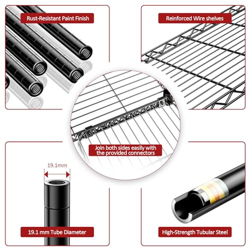 - 【Heavy-Duty Metal Construction】 Crafted from premium steel with a durable coating, this shelving unit offers excellent load-bearing capacity and stability. Built to resist rust and corrosion, ensuring long-lasting use even in humid environments.