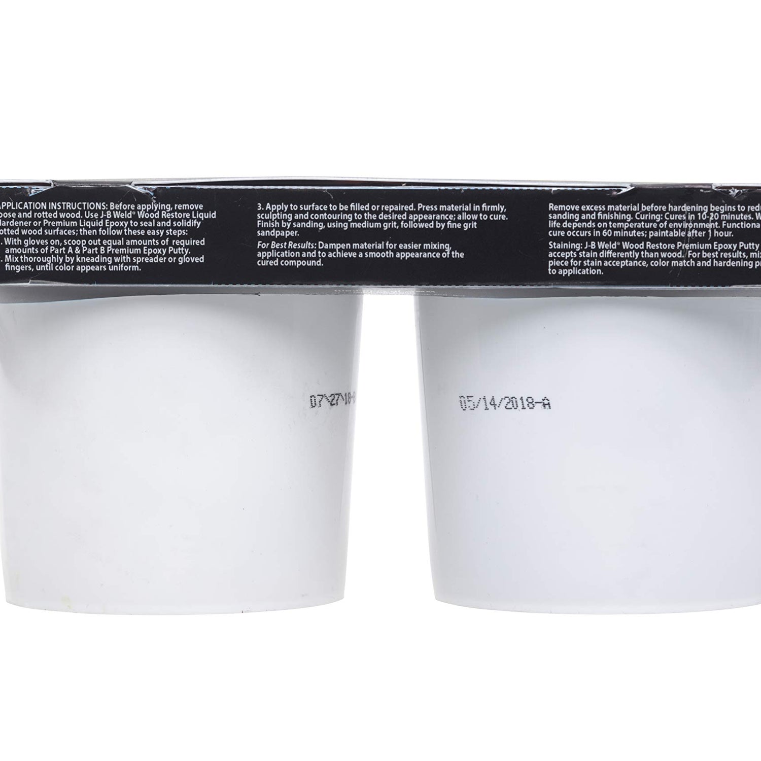 Details: J-B Weld Wood Restore Premium Epoxy Putty – Repair Compound is a hand mixable epoxy putty specially formulated to repair and rebuild wood quickly and easily. When applied it adds structural strength to areas of damaged or rotted wood. It can be used to fill, build, reinforce or bond wood surfaces. After mixing, it forms a polymer compound that cures to the same density as wood. It may be used for exterior or interior applications; contains no solvents; will not rot, shrink, crack or pull away. After 60 minutes, it can be sanded, tapped, machined, dripped, filed and painted.