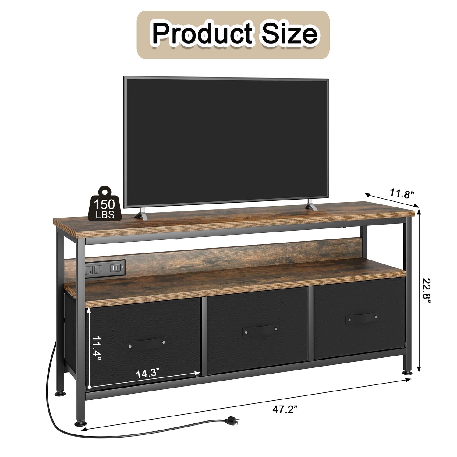 - Industrial Style: This TV stand with modern black metal frame and simple clean lines, which creates a industrial style vibe that can match any bedroom and living room décor.